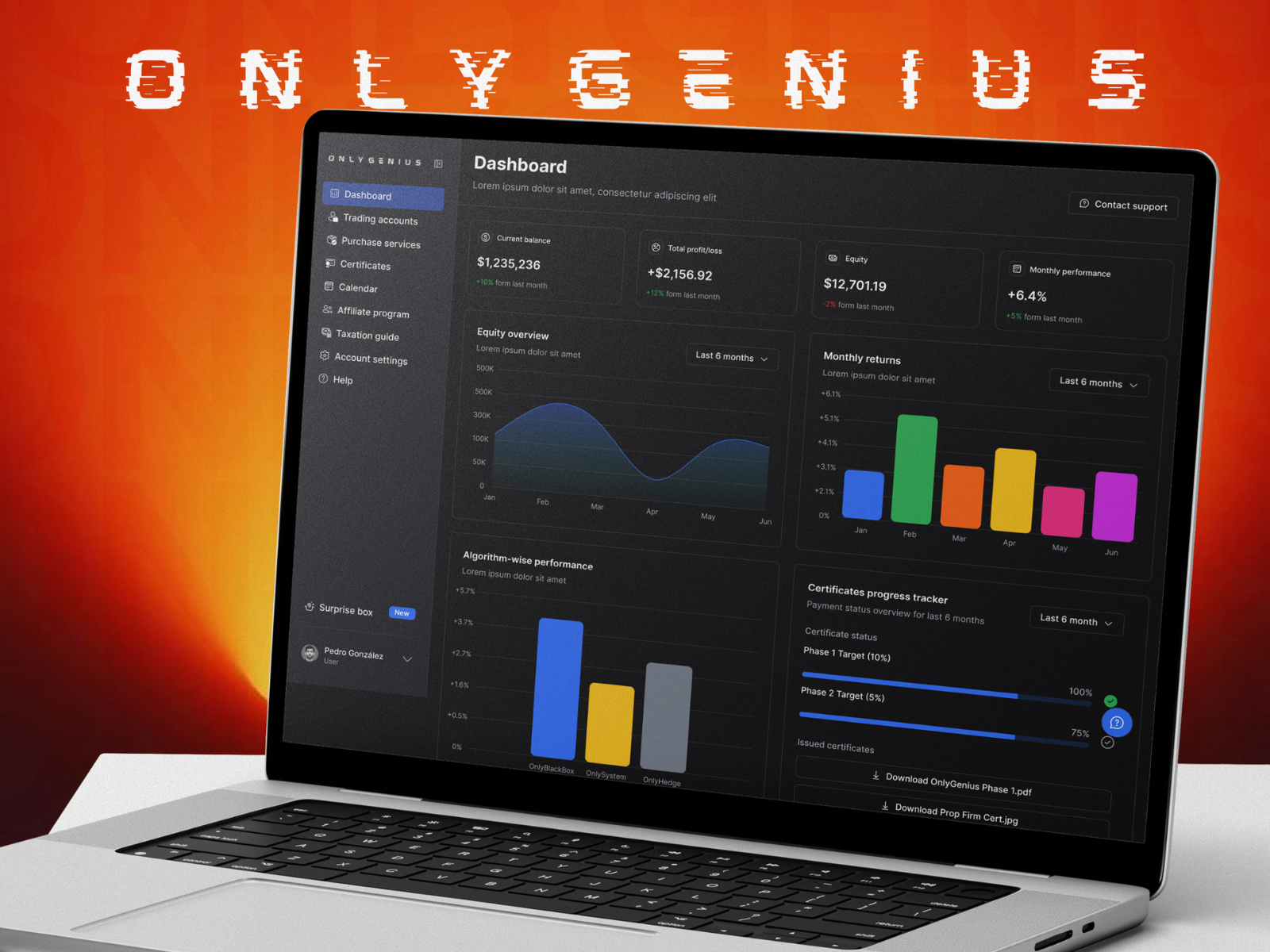 OnlyGenius is a company specializing in algorithmic trading, offering a suite of three high-value ("high ticket") algorithms that operate simultaneously and in a fully automated manner.