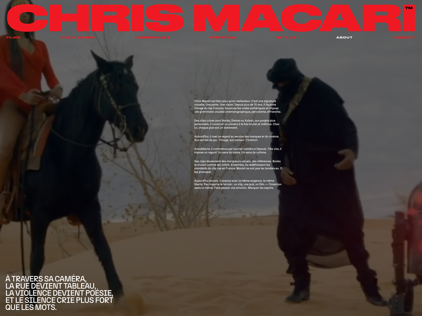 Chris Macari is a filmmaker and director crafting compelling films, commercials, and music videos. Explore his portfolio of cinematic storytelling
