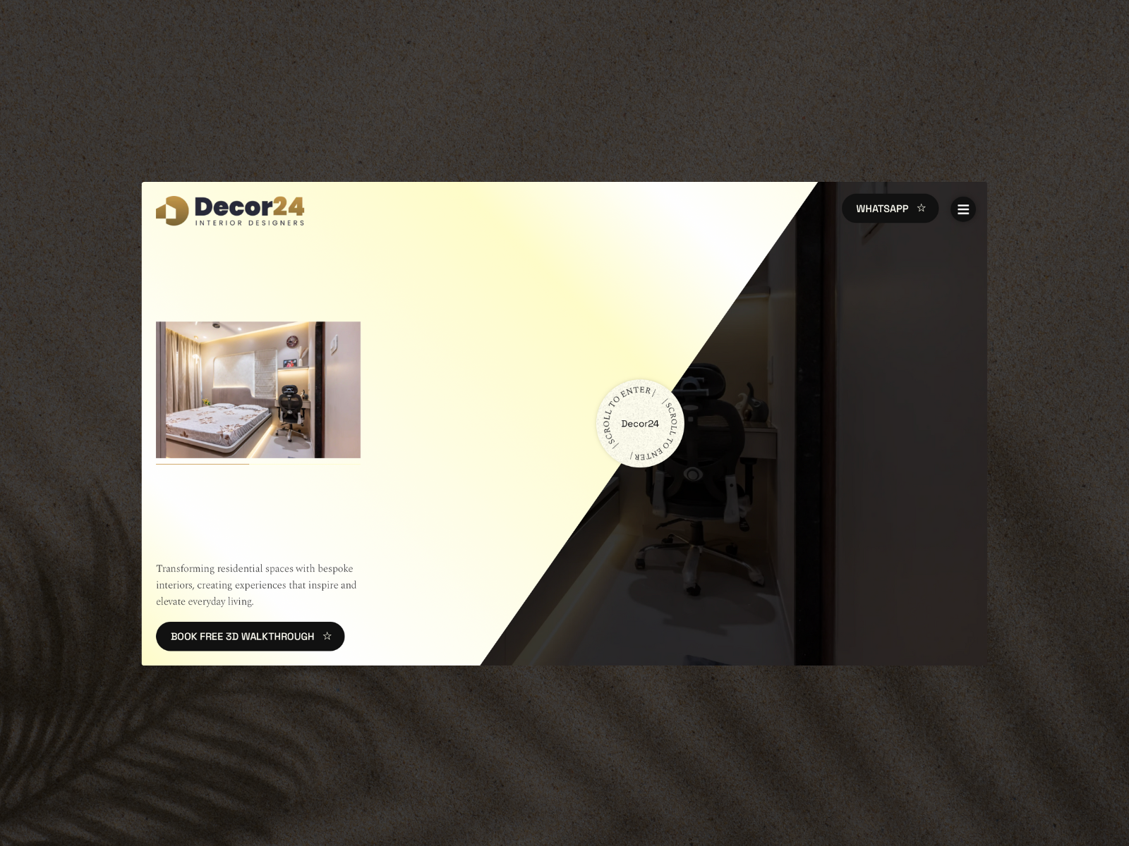 Crafted to elevate Decor24's brand presence, this immersive site showcases their interior design portfolio through cinematic animations and engaging interactions.