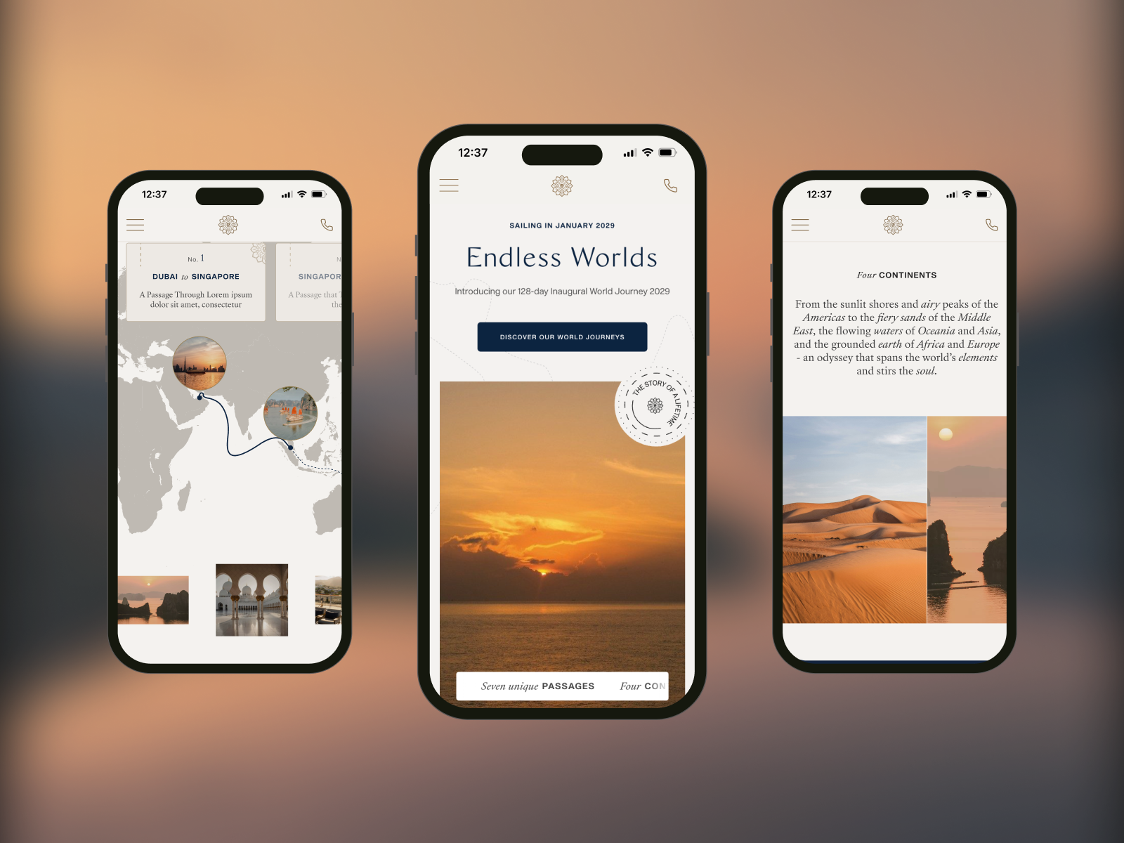Endless Worlds by Explora Journeys is an immersive experience with cinematic design, fluid UX, and evocative storytelling.