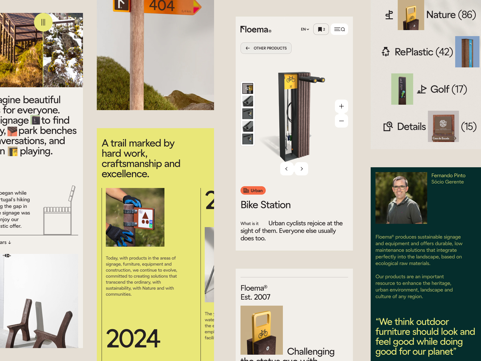Floema designs and produces sustainable urban furniture and signage for natural spaces. Spaces for people, made for life.