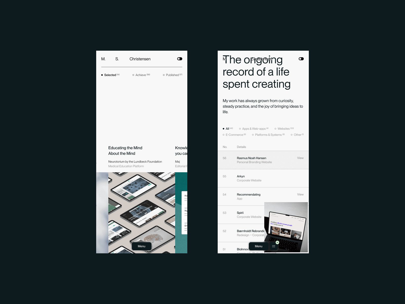 Portfolio of Morten Stig Christensen, a digital designer & developer crafting thoughtful digital experiences through clarity, interaction, storytelling, and craft.