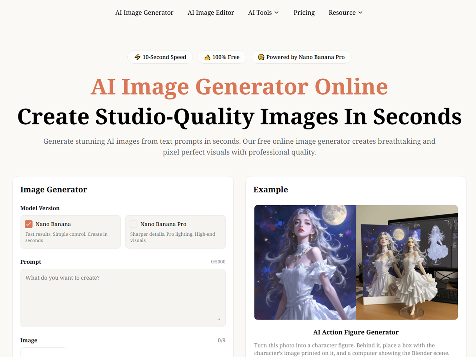 Free online AI image generator and AI tools including image upscaler, background remover, and AI editor. Generate consistent characters, realistic photos.