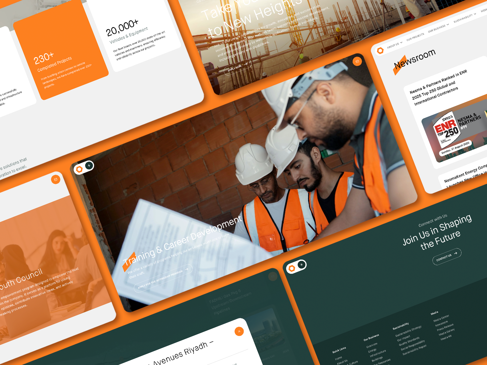 An immersive digital journey for Nesma & Partners, using expressive visuals, scroll-triggered storytelling, and dynamic UI to showcase a legacy of innovation and sustainable impact.