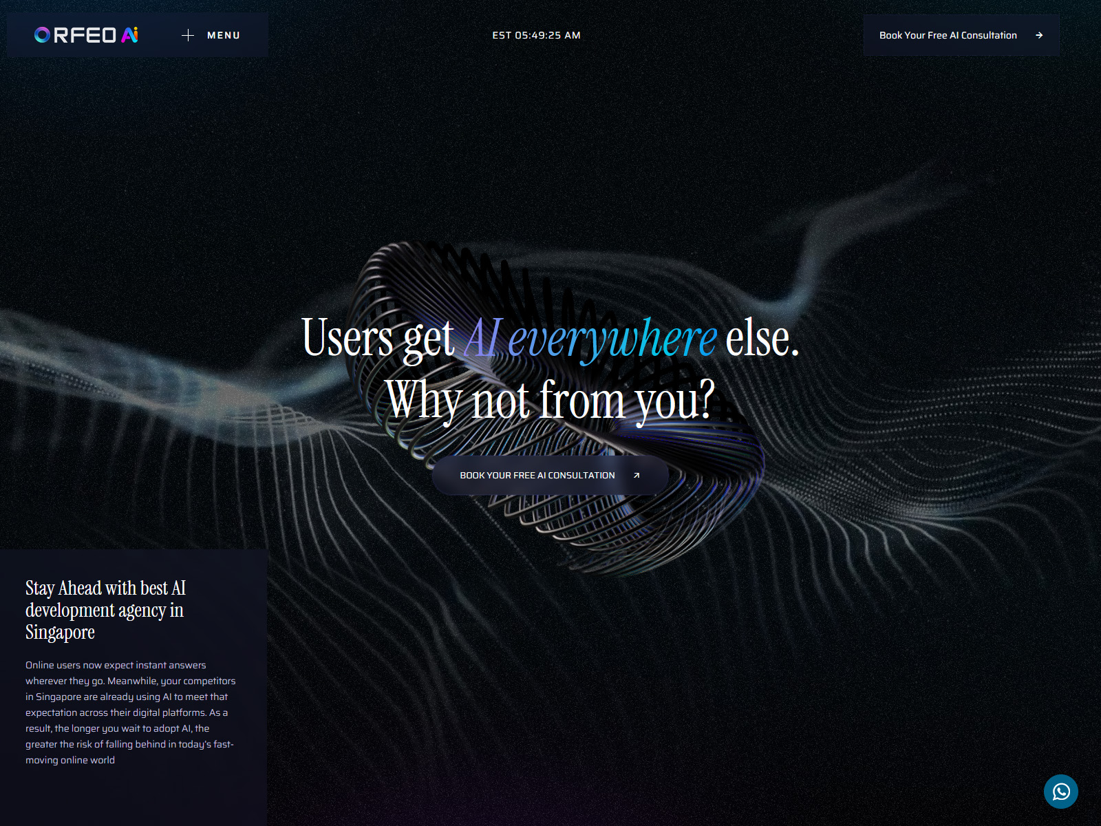 A cutting-edge AI company website built with modern technologies like WebGL and GSAP, featuring immersive animations, high performance, and a sleek dark-themed user experience.