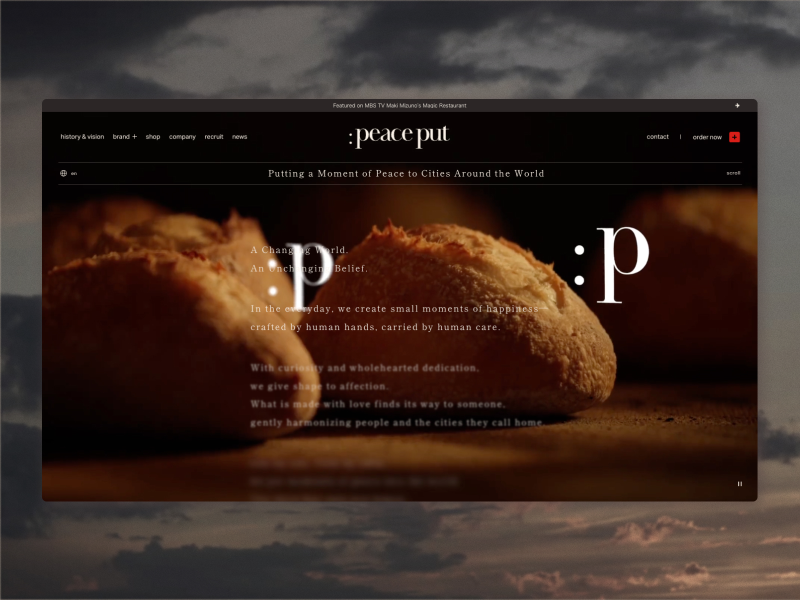 peace put is a Japanese food company behind eight beloved brands — a site designed to carry their philosophy both inward and out.