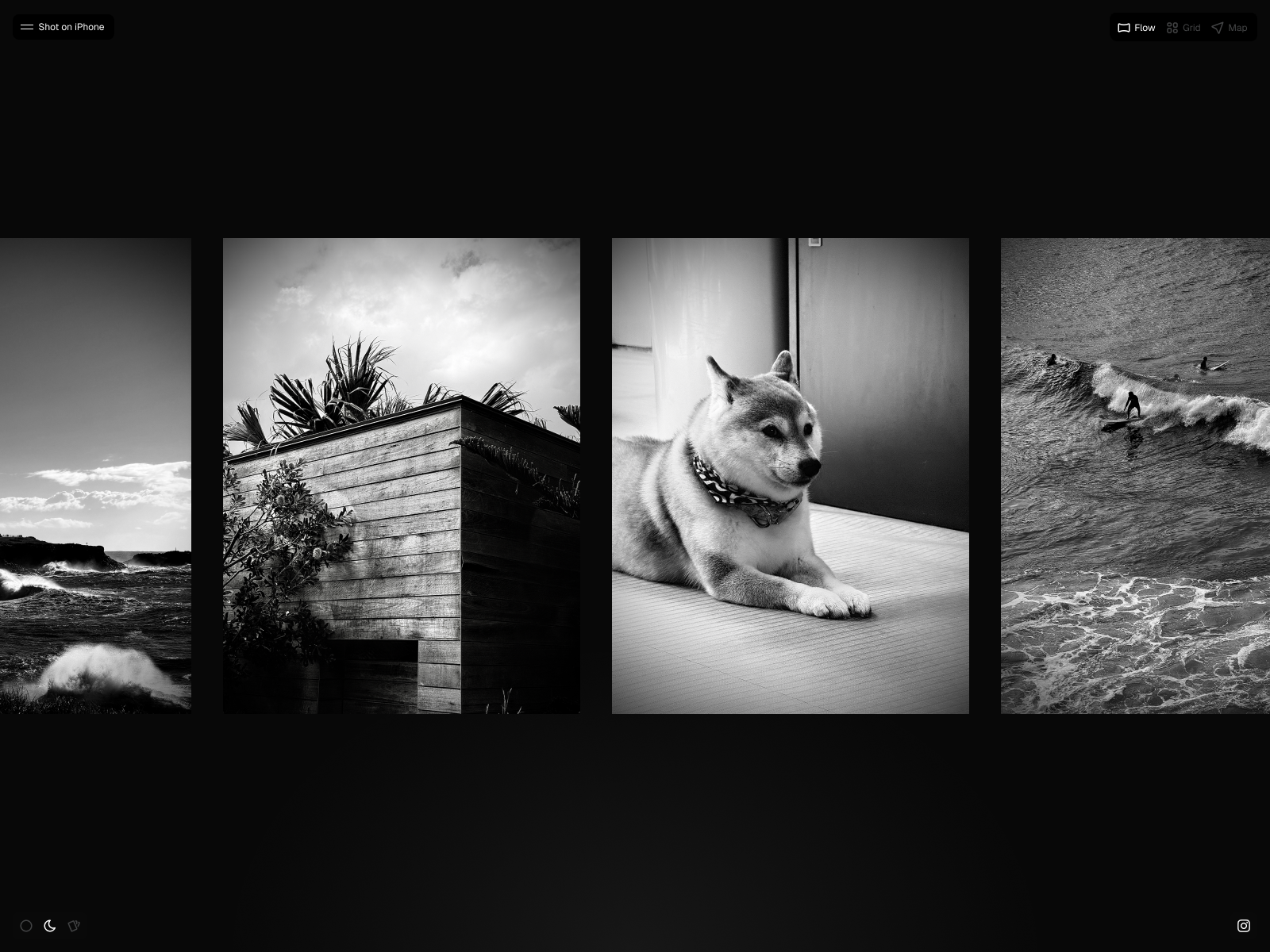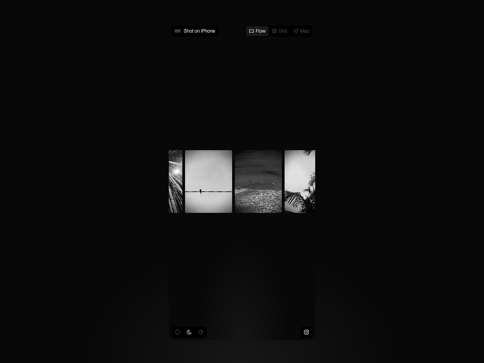 An ongoing photography experiment built around automation: a back-end pipeline extracts EXIF metadata from every shot and renders it on the website, replacing manual work entirely.
