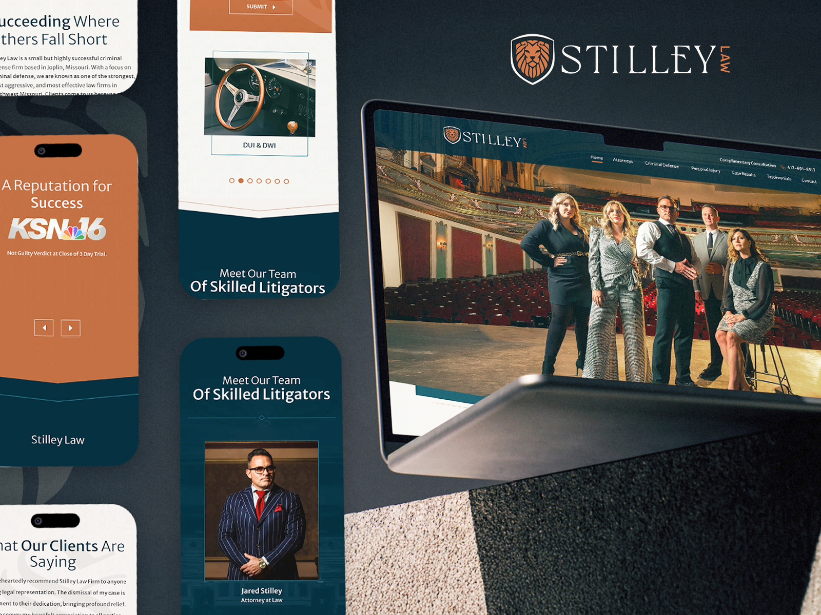 The Modern Firm designed a bold, responsive site for Stilley Law, using attorney-written content and striking visuals to project confidence and a record of success.