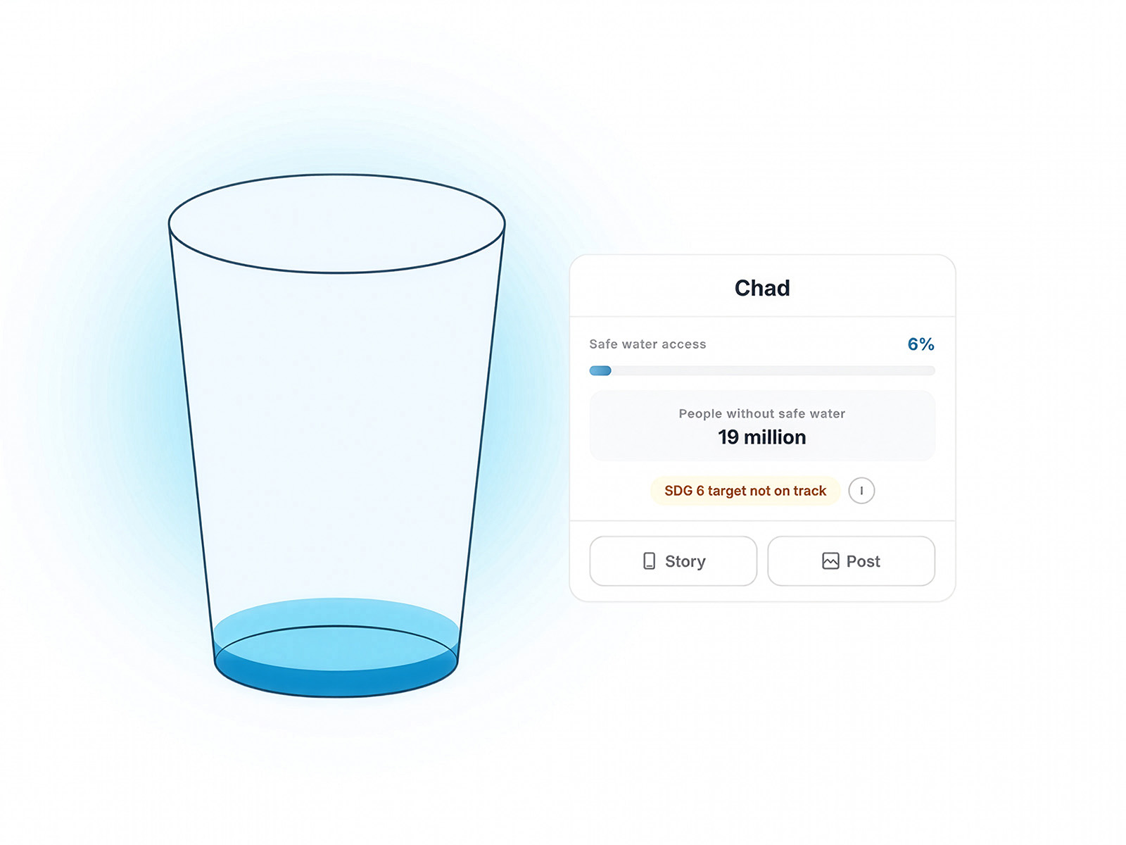 An interactive experience that visualizes access to safely managed drinking water through a filling glass, turning global data into a simple, human-centered story of inequality.