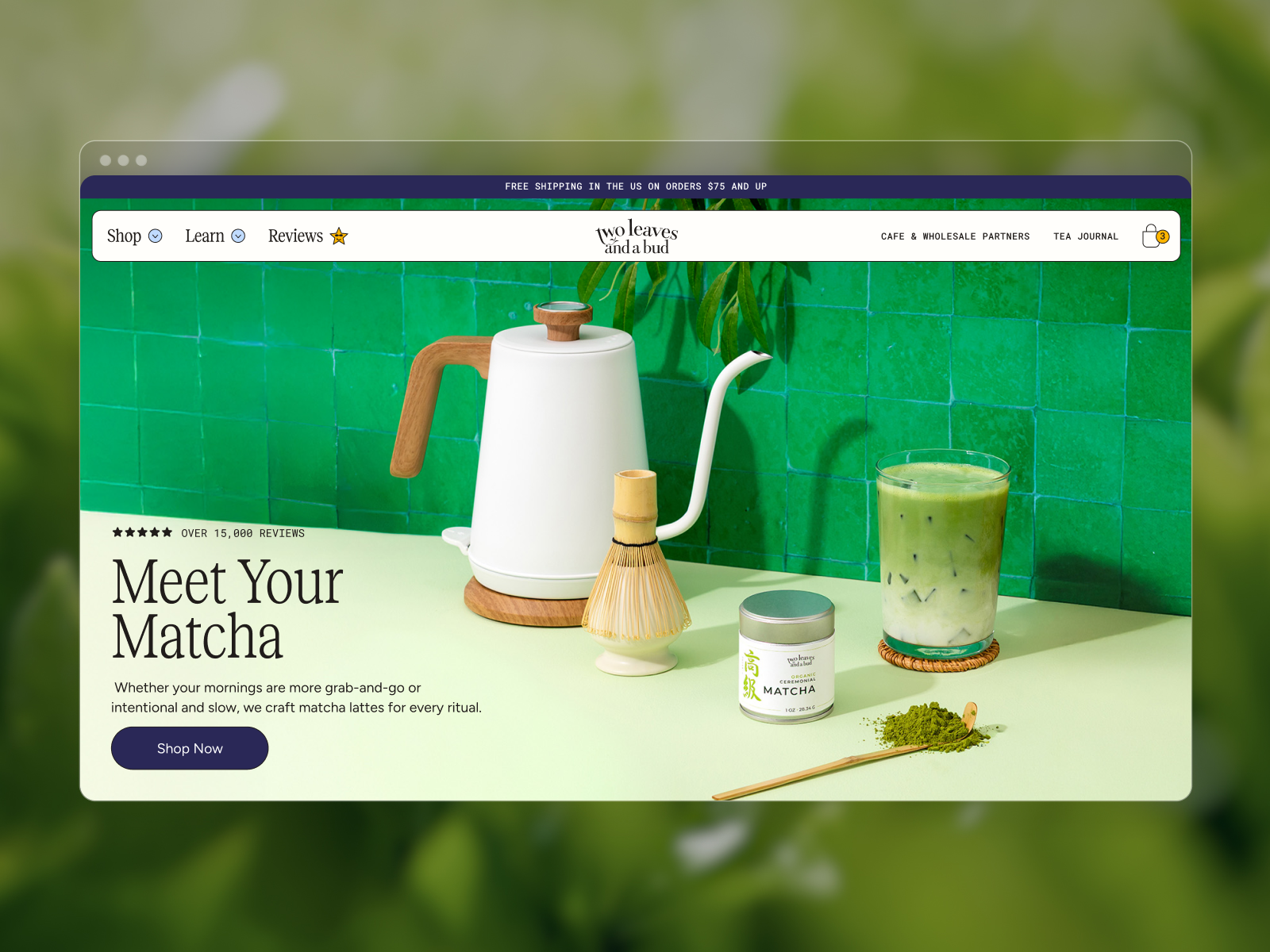 A Shopify redesign for Two Leaves and a Bud, repositioning a wholesale-first premium tea brand as a serious DTC channel without losing what makes it credible