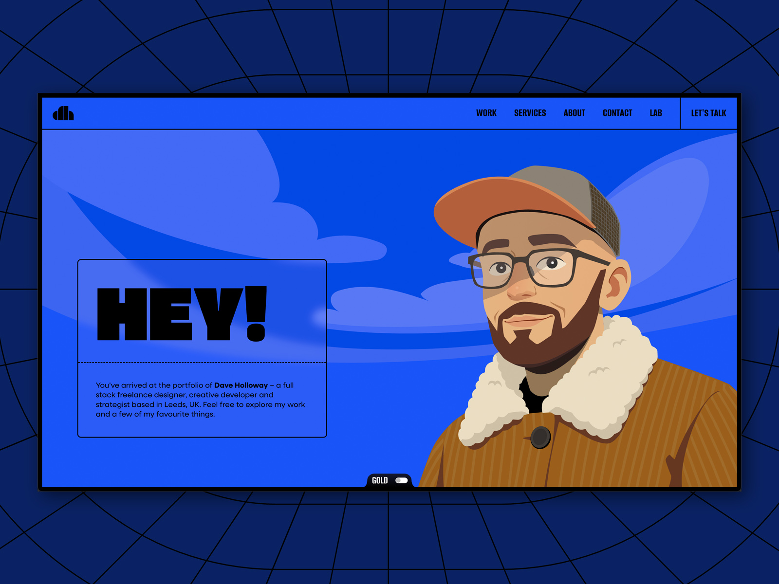 'Gold Mode' state with glowing spotlight text, butterfly animation and colorisation from Dave Holloway - Portfolio