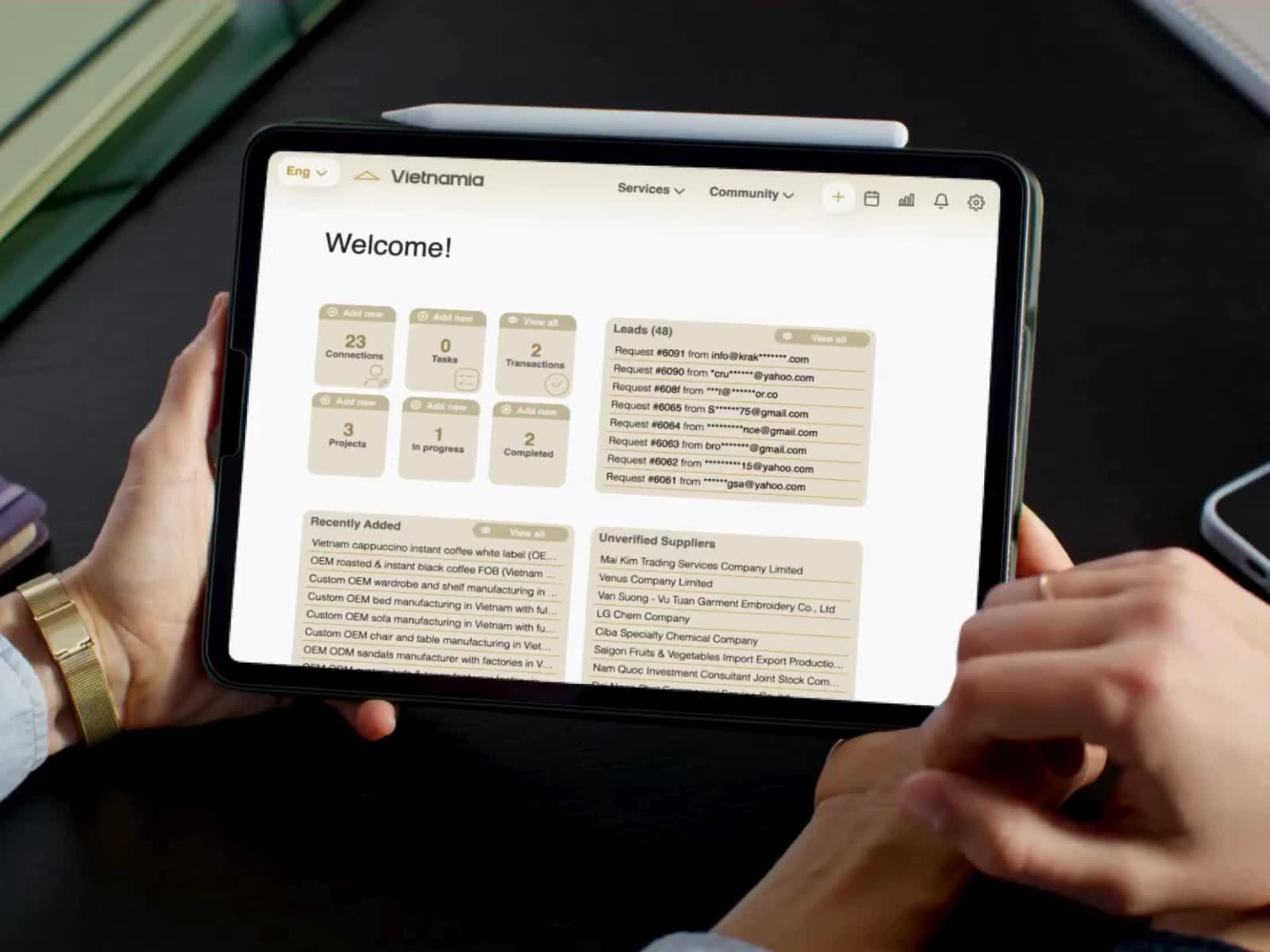 The B2B dashboard turns sourcing activity into controlled execution from Vietnamia