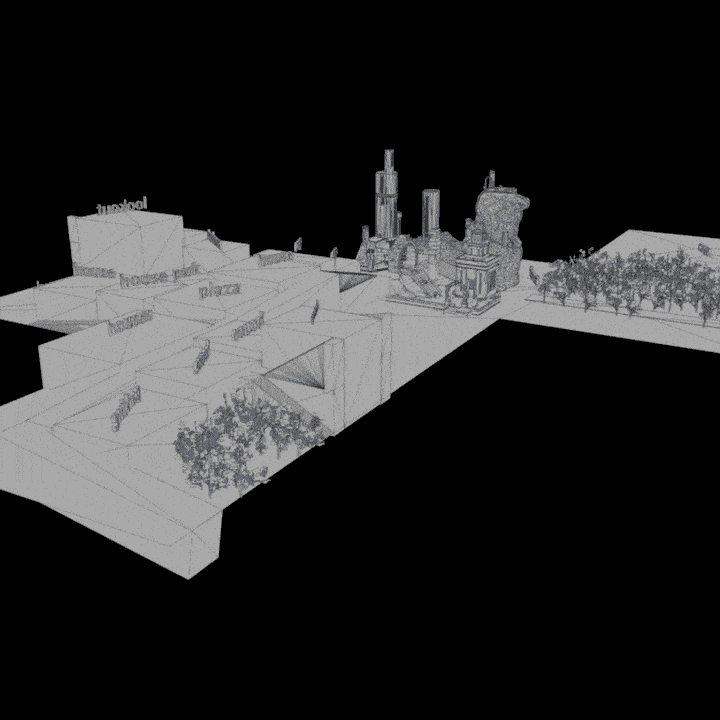 To keep the frame rate high, we created a custom LOD (Level of Detail) system. It swaps out high-detail objects for simpler ones as you move away, but it does so while preserving the overall visual shape of objects, so the "popping" effect often seen in games is minimized.