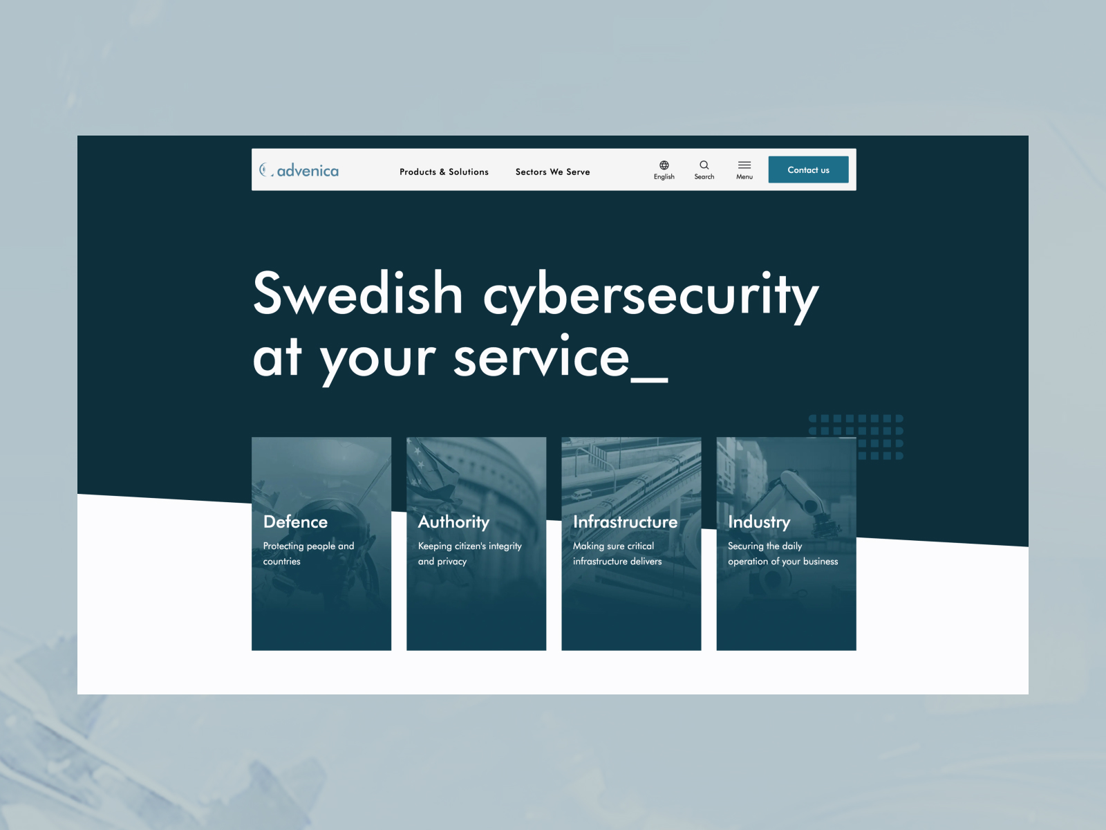 A secure, modern website showcasing Advenica’s high-assurance cybersecurity solutions for national defense, designed to build trust and drive sales with clear content and intuitive UX.