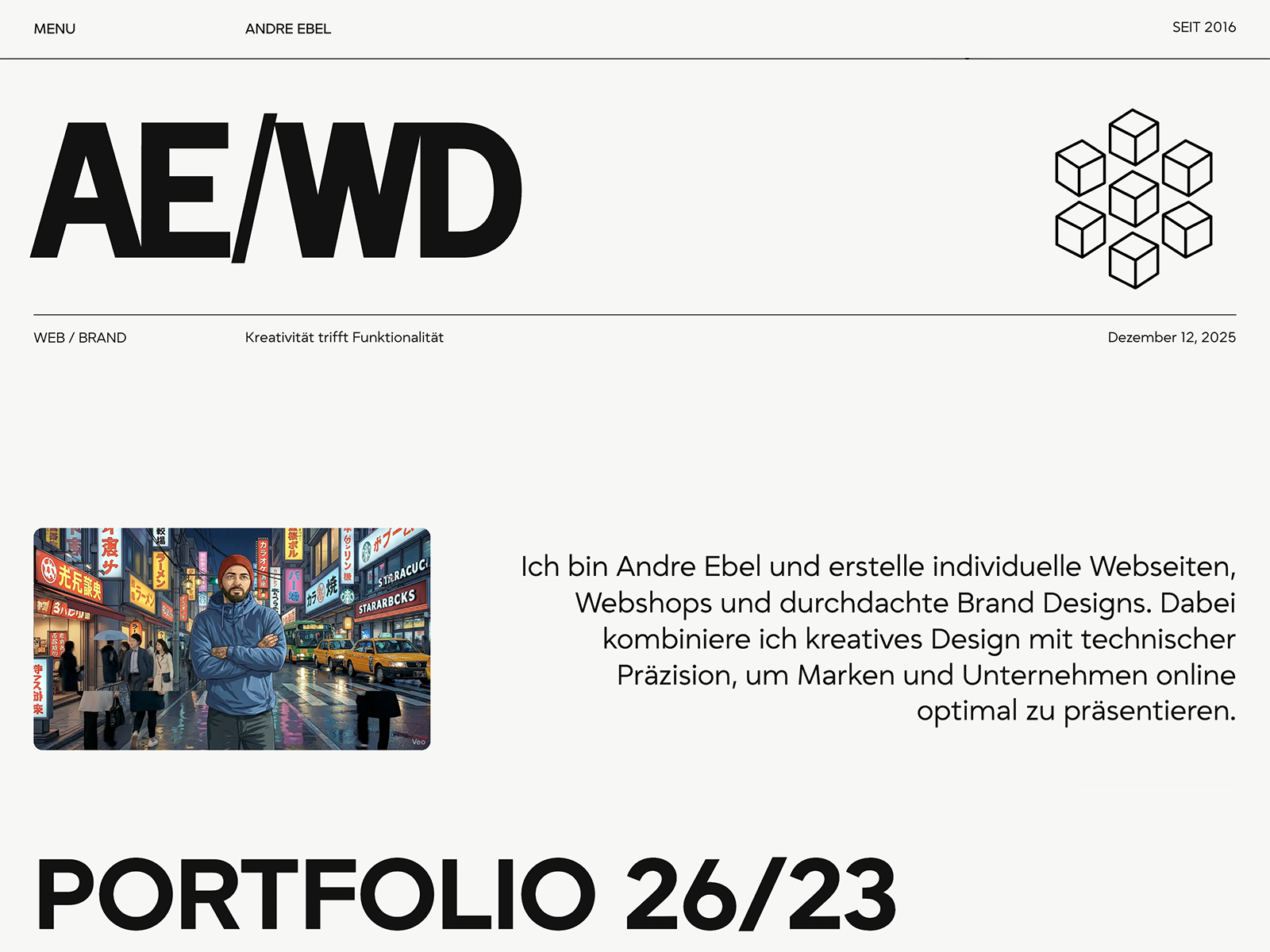 My name is Andre Ebel and I create customized websites, webshops, and well-thought-out brand designs. I combine creative design with technical precision to present brands and companies.
