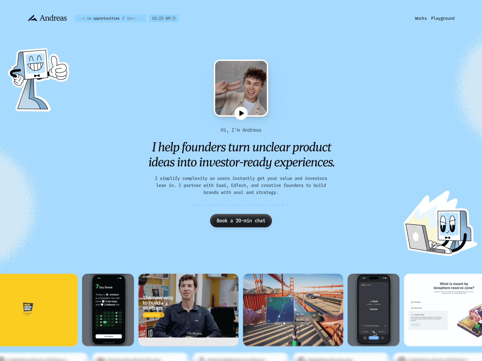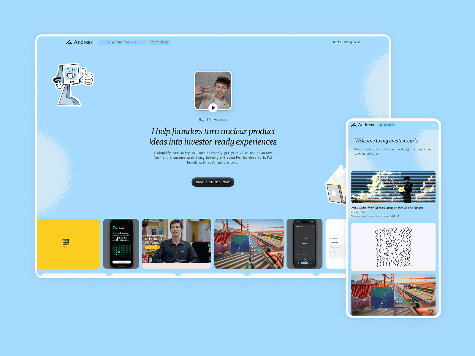 A strategic design portfolio built to attract clients and collaborators by clearly showcasing my process, outcomes, and real-world impact across UX, brand, and startup work.
