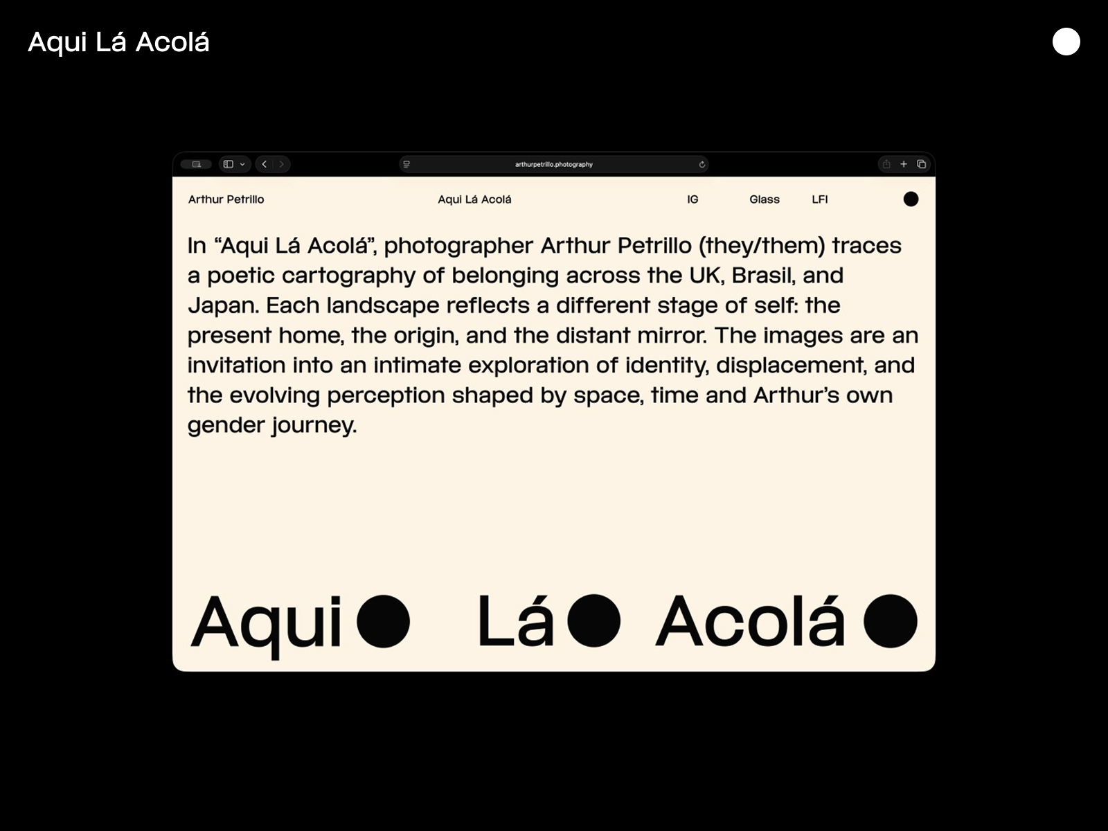 Aqui Lá Acolá maps Arthur Petrillo’s search for belonging across the UK, Brazil and Japan, exploring identity, displacement and self shaped by place, time and gender journey.