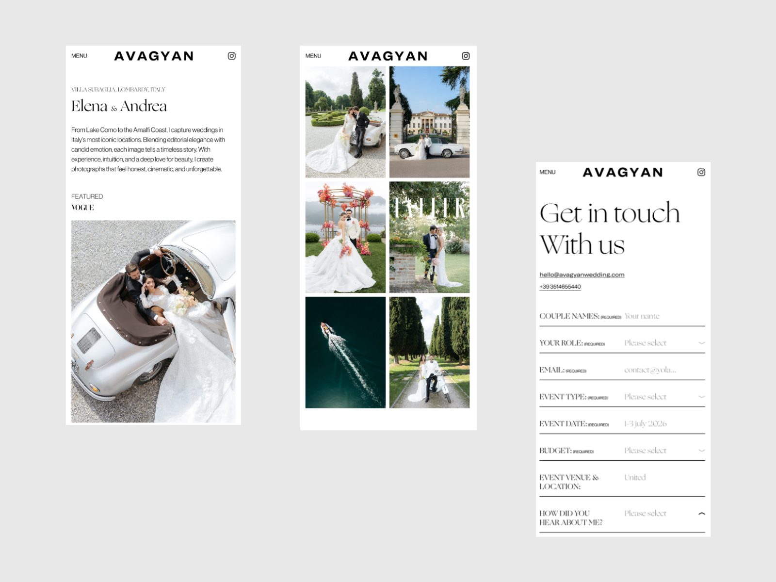 Avagyan is a wedding photographer based in Italy, capturing timeless moments of love and celebration with an elegant, editorial approach across the country's most romantic settings.