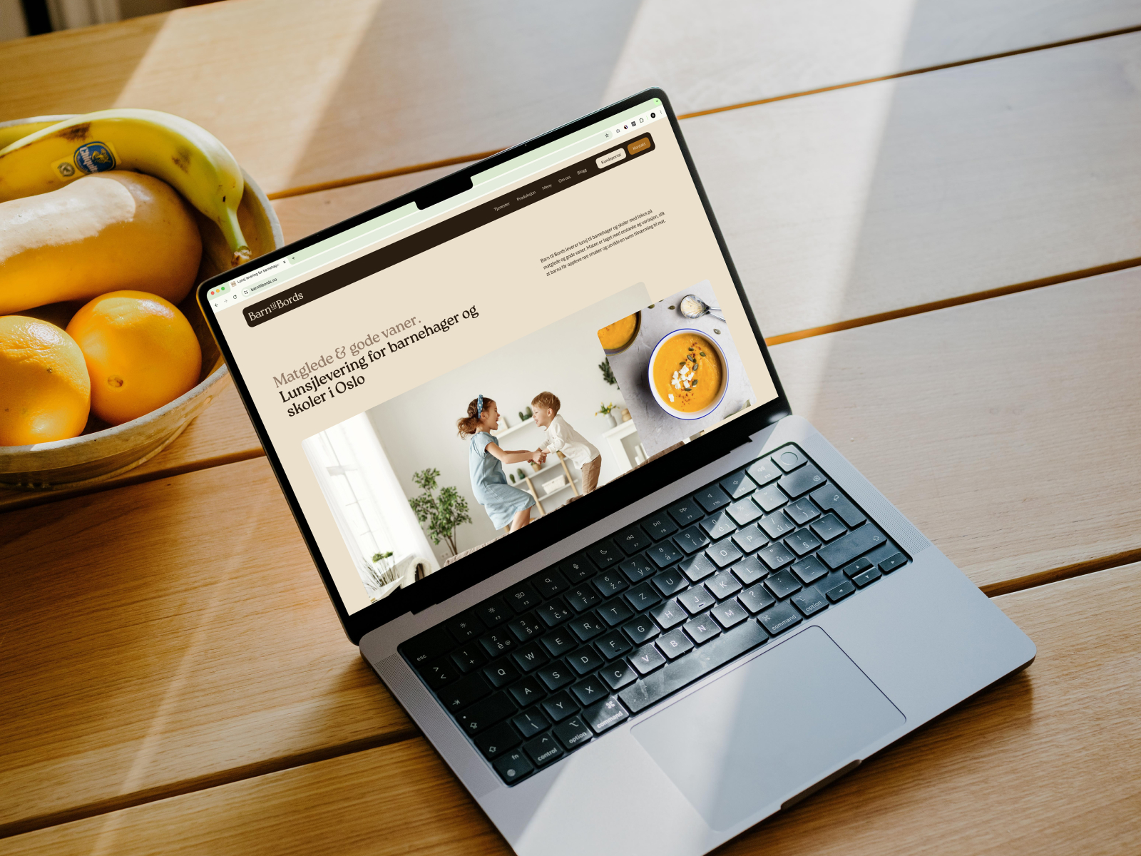 Branding and website for Barn til Bords, a program that builds food joy and good habits for families. Warm identity, natural imagery and a smooth Webflow site.