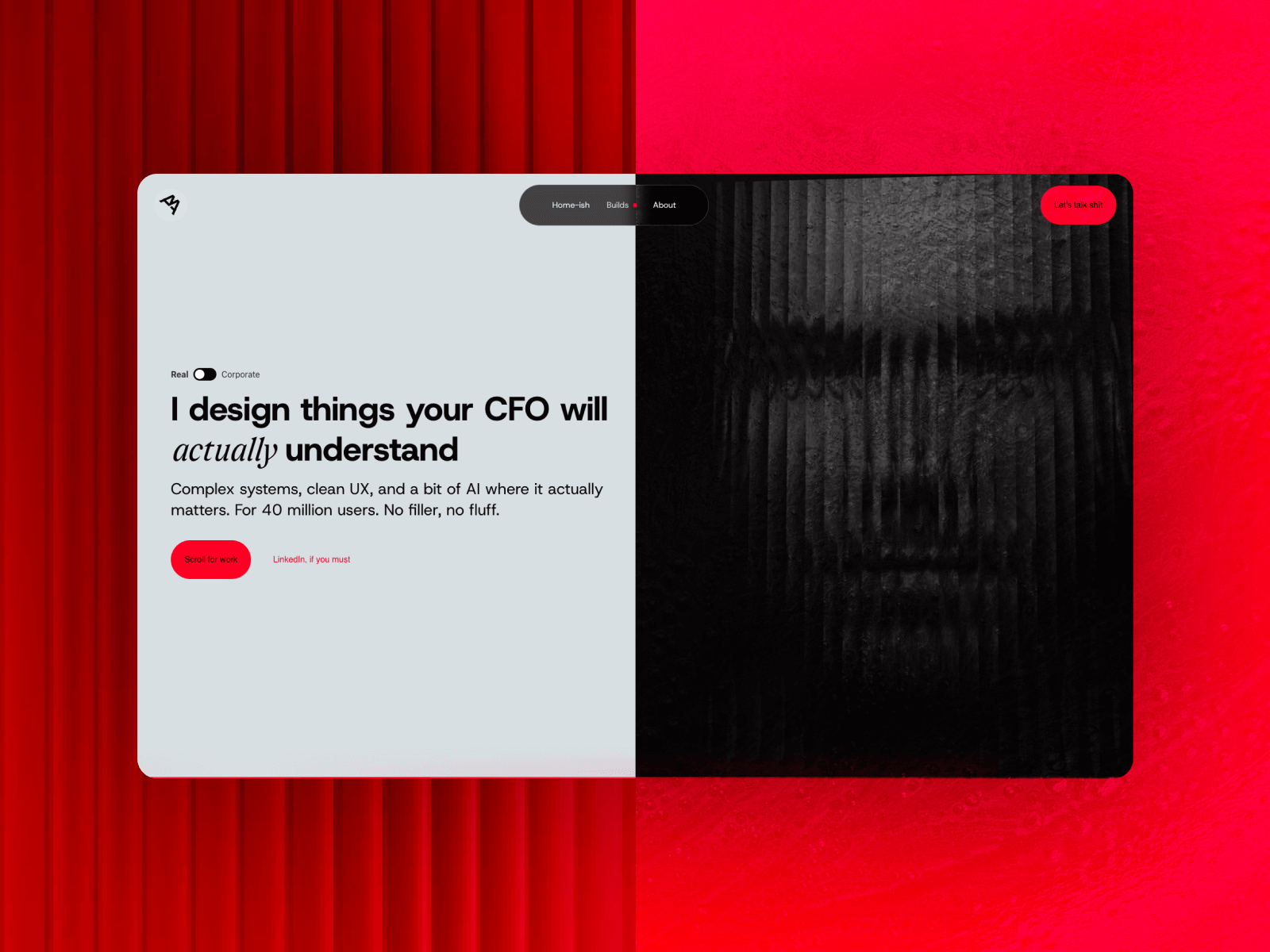 A product strategist who codes his own designs. Sharp UX, fast builds, engineered behaviour. Interfaces built, not mocked. No filler, no fluff.