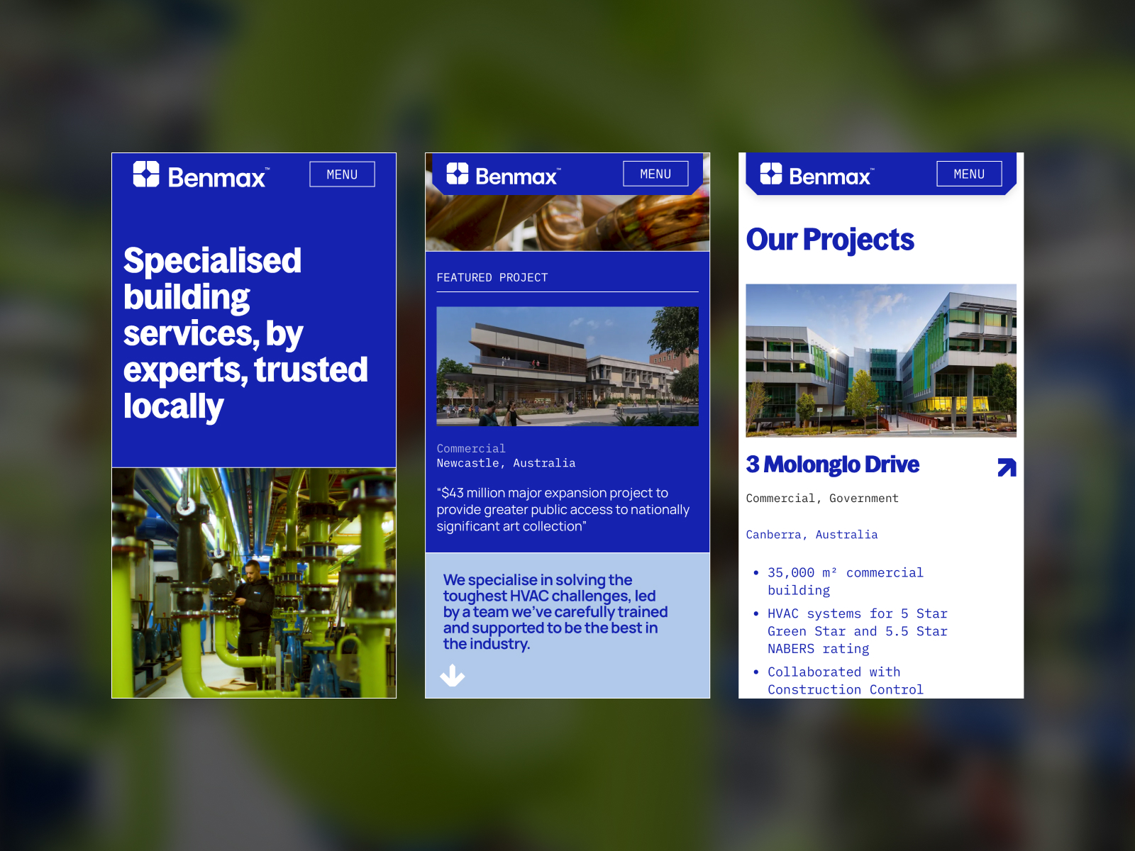 A rebrand centered on remembering Benmax's origin story. The identity and design system balance technical precision with human pride – from typography to motion.