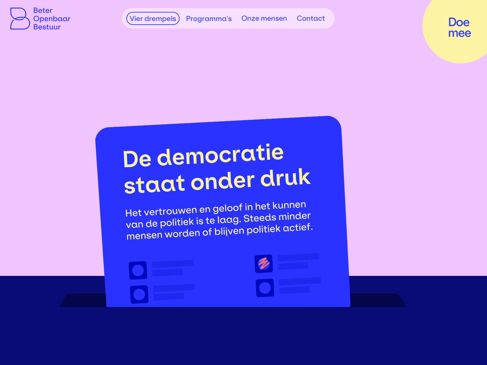 Beter Openbaar Bestuur is a non-profit initiative strengthening democracy by ensuring politics reflects and includes all voices.