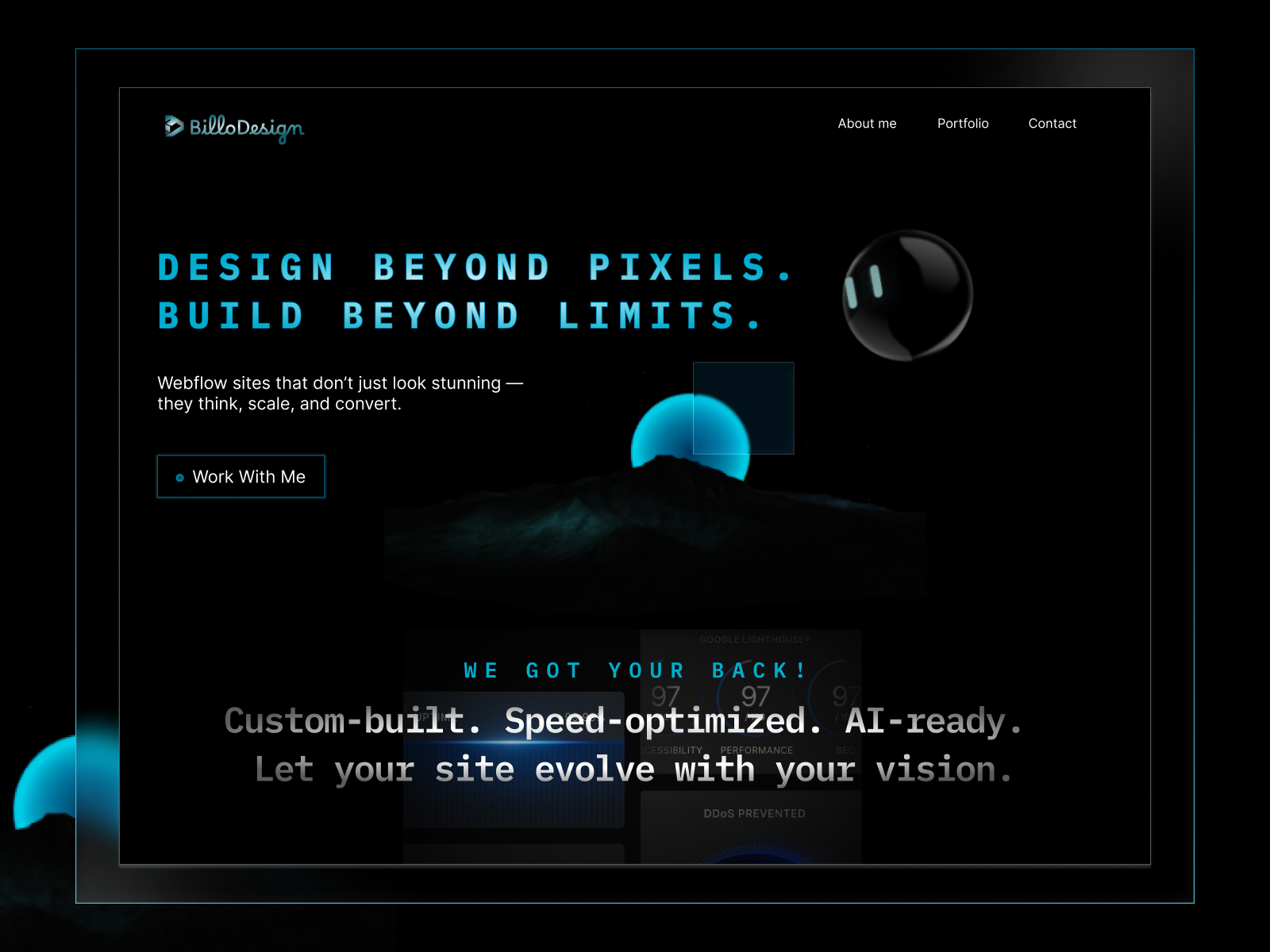 A minimal, futuristic Webflow portfolio guided by a living AI orb—featuring micro-interactions, sound design, smooth motion, and a clean, premium visual experience.