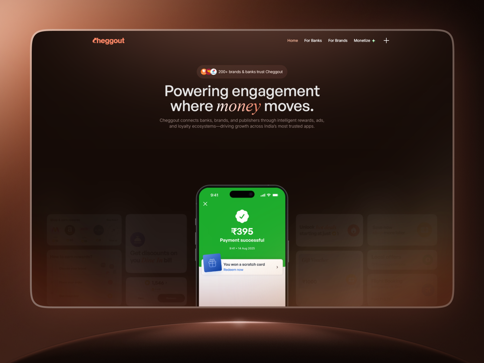 Cheggout is a reward-driven engagement platform for everyday digital experiences. It helps banks and brands drive real engagement through well-timed moments inside trusted apps.