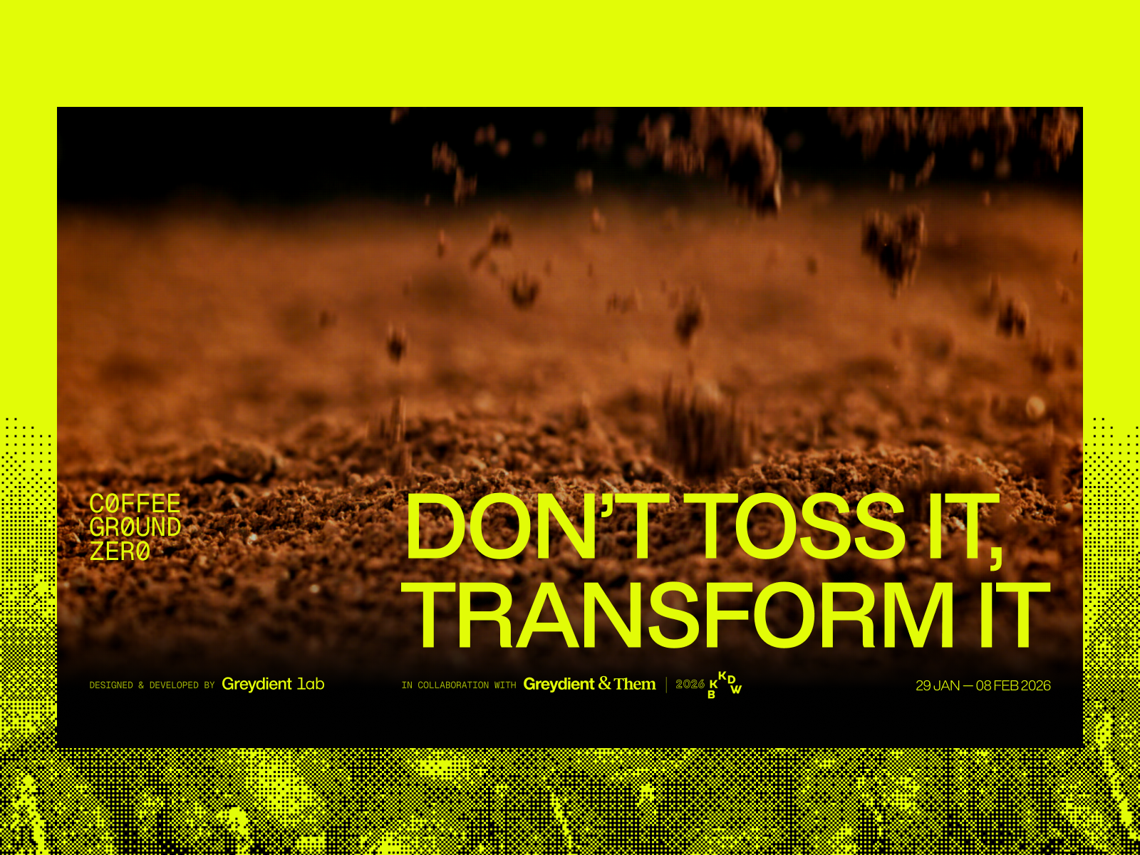 An initiative by Greydient Lab and Greydient & Them Café for Bangkok Design Week 2026, turning used coffee grounds into catalysts for urban composting with guides and recycling points.
