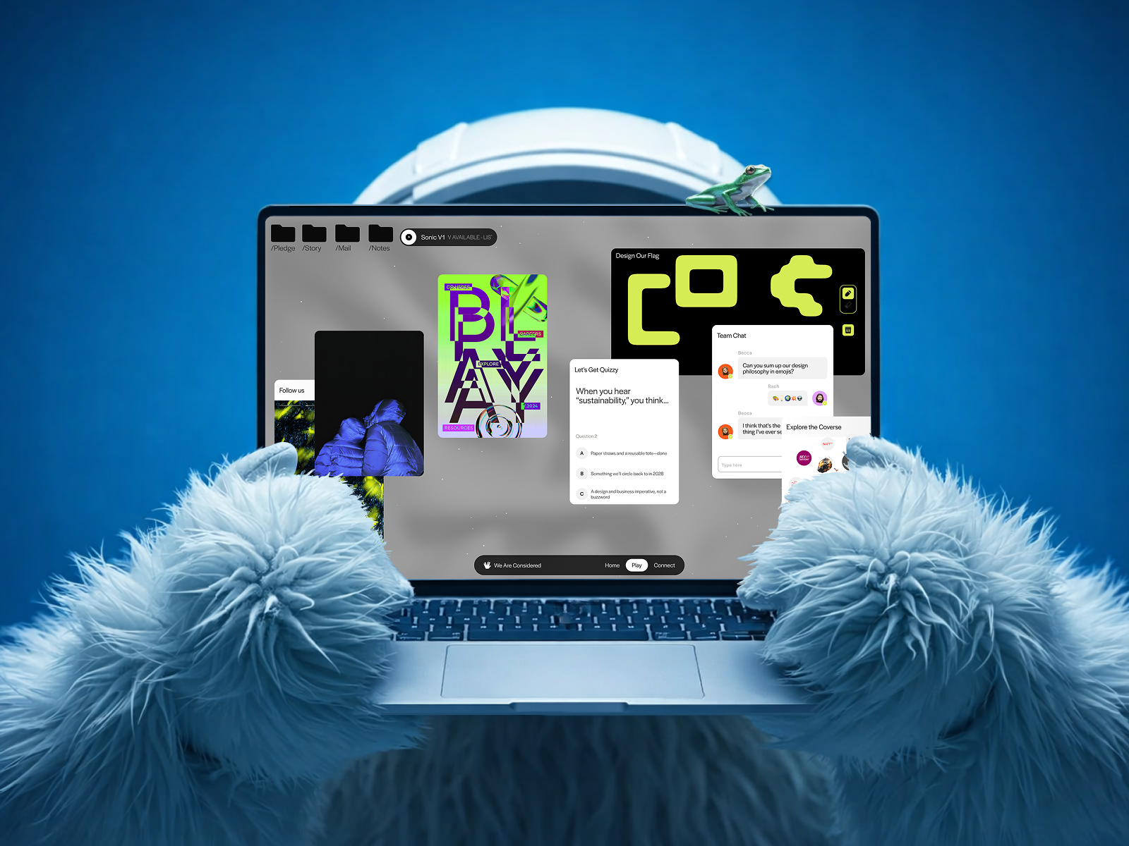 Our orbit: a female-led, independent studio with an interactive co:verse website. Where play, collaboration, and carbon-conscious design aren’t just features, they’re a statement.