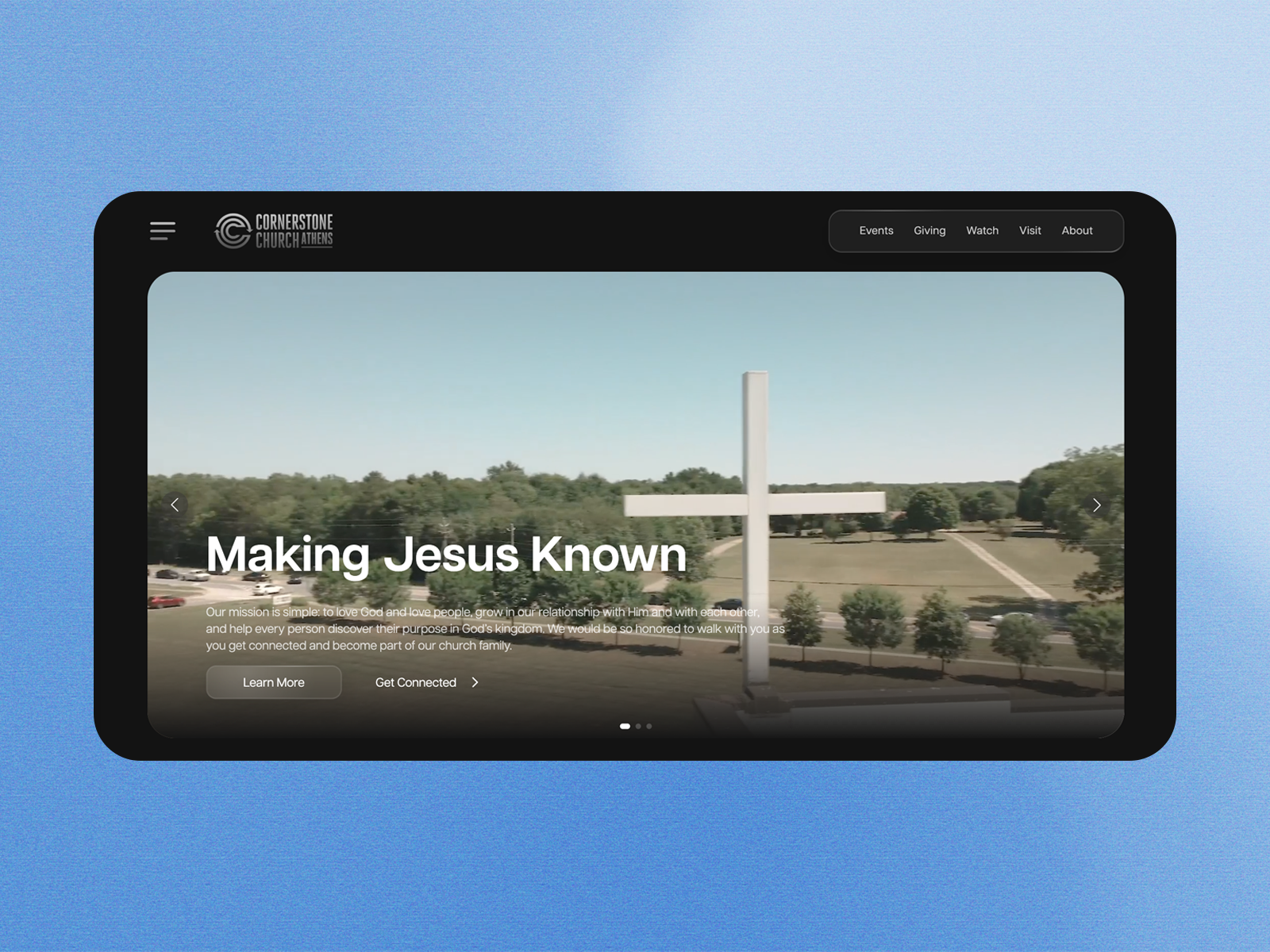 A visually rich, interactive church experience with sleek animations and custom interactions designed to invite and engage the local community.
