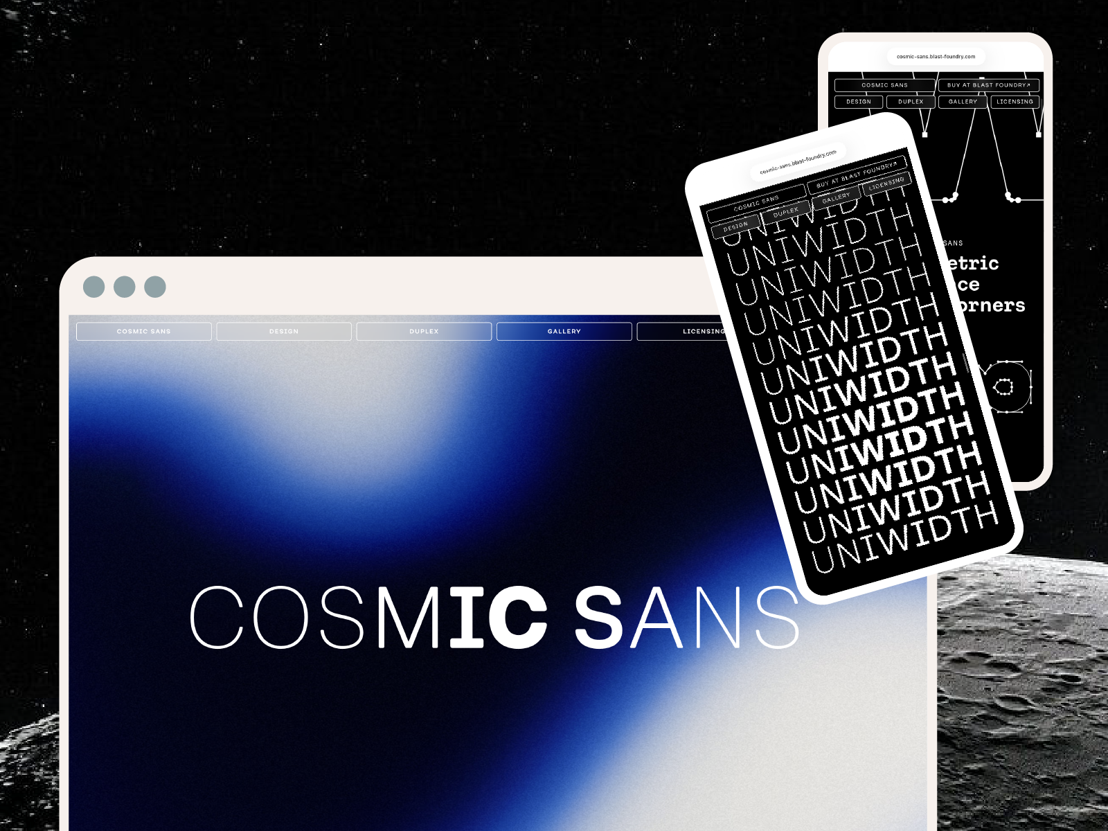 Dedicated typographic microsite for the Cosmic Sans font family. In one long scroll, it tells the font story and lets designers explore it in an interactive, space-themed environment.