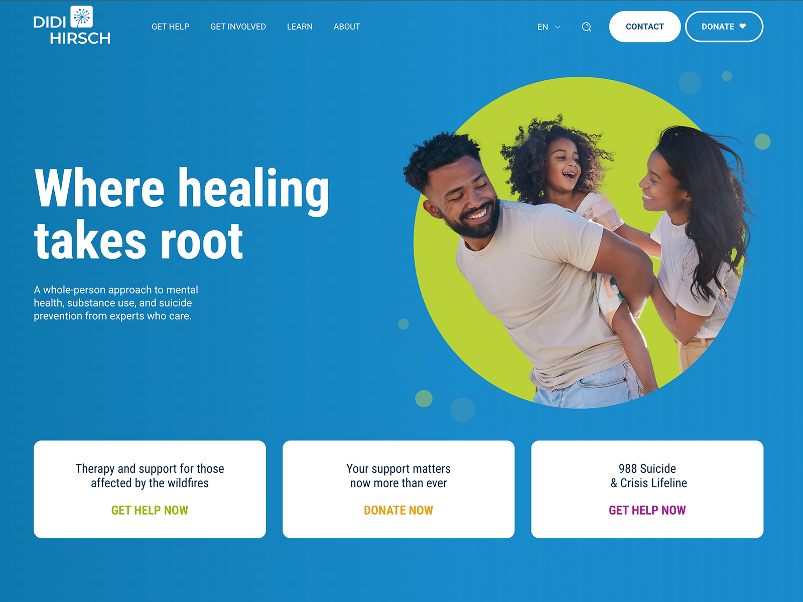 Five disconnected websites made it harder for people in crisis to find help. We unified Didi Hirsch Mental Health Services into one cohesive platform serving 10 languages across LA.