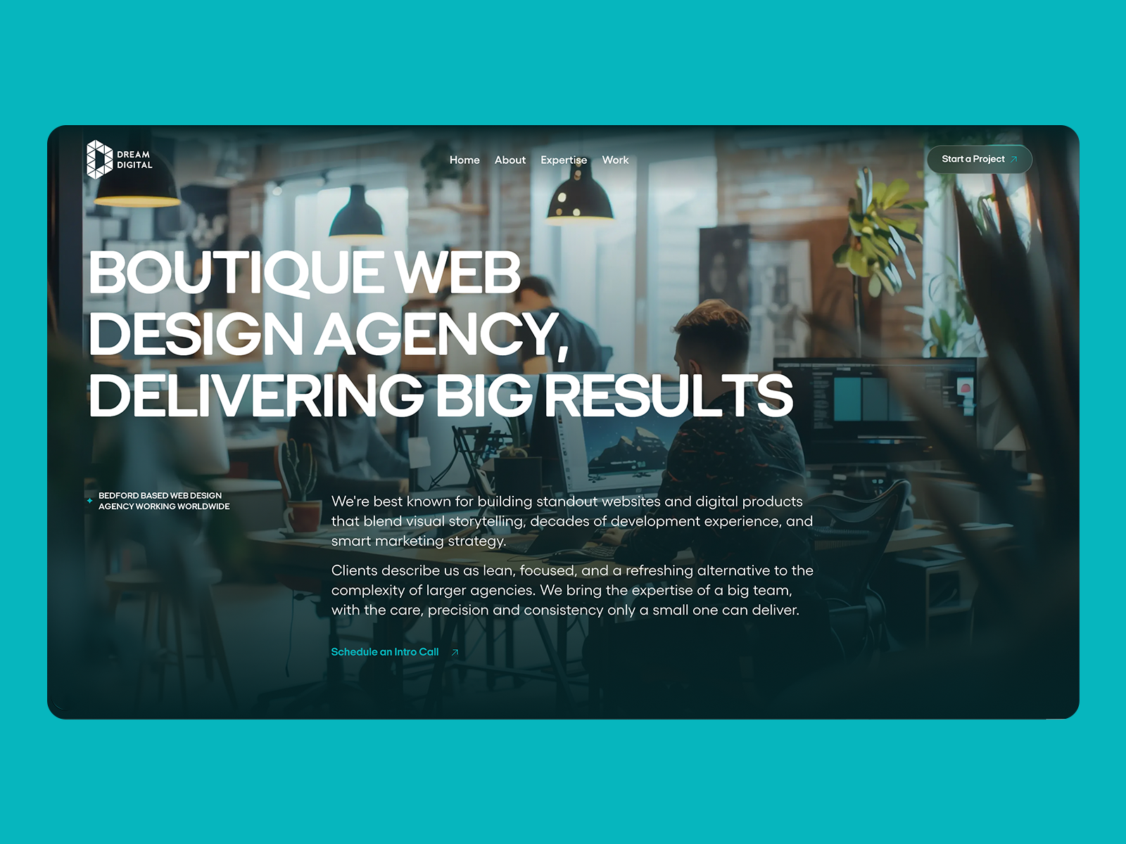 Built to promote our web agency based in Bedford, the site strikes a balance between clarity and creativity, blending usability with animations that bring our work to life.