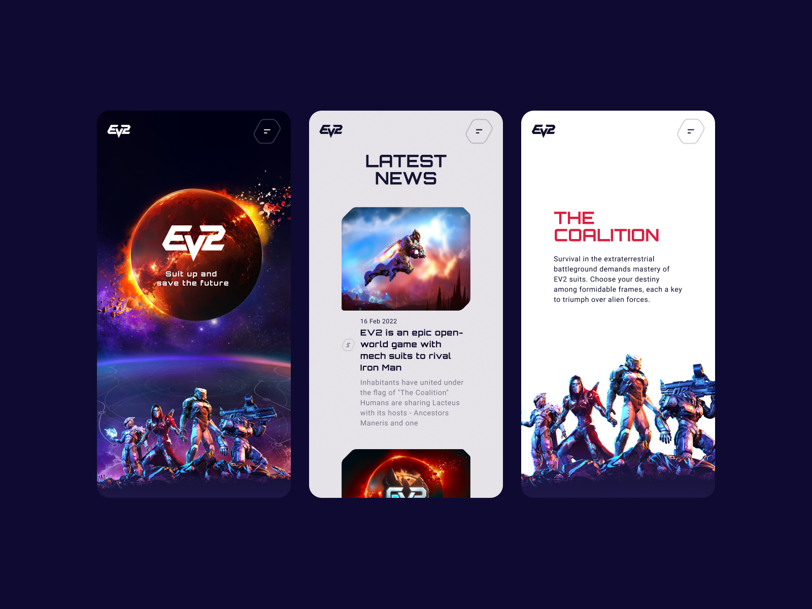 EV2 landing page sets the stage for a sci-fi universe where Earth has burned, transformed, and become the battleground for heroes fighting against invaders.