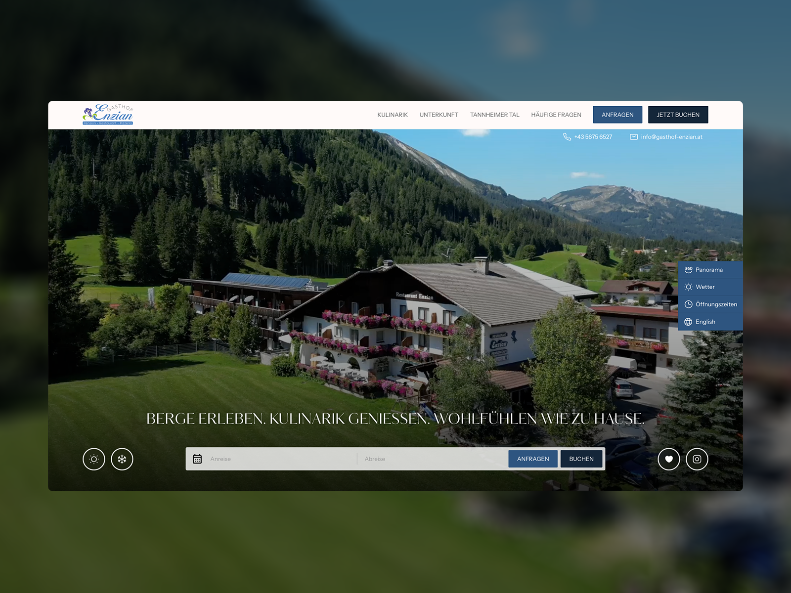 A modern hospitality website for an alpine guesthouse, focused on clarity, booking usability, and regional identity. Designed to support inquiries, trust, and seasonal content.