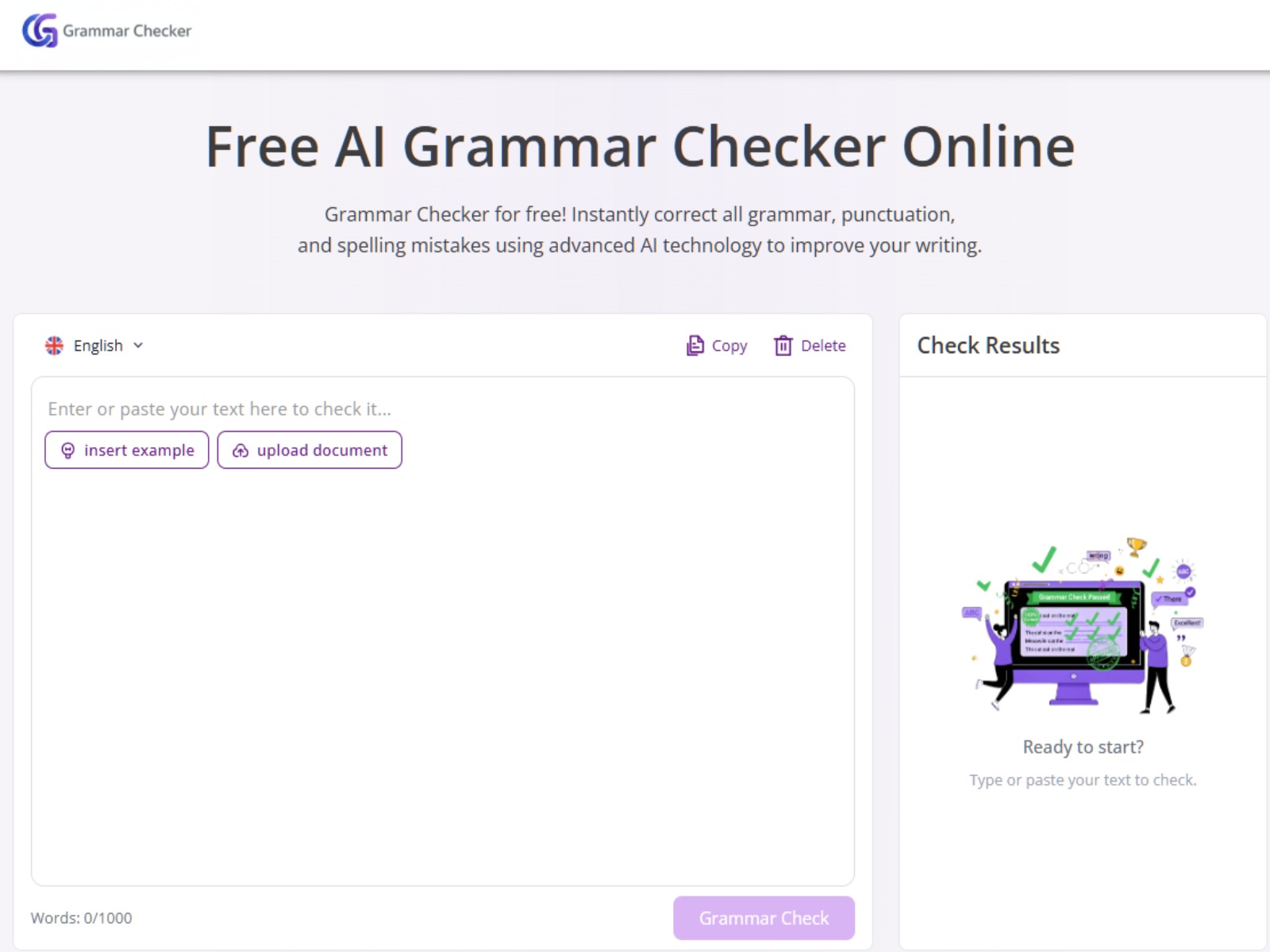 Grammar Checker for free! Instantly correct all grammar, punctuation, and spelling mistakes using advanced AI technology to improve your writing.