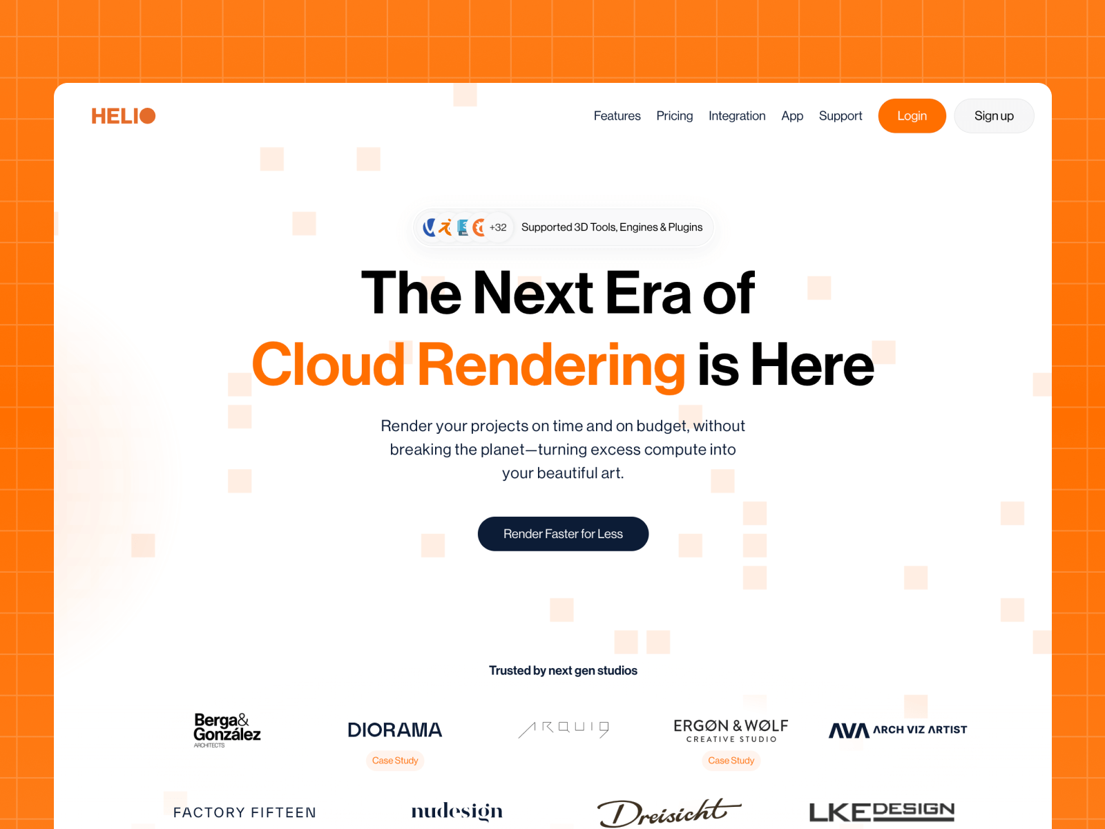 Helio Render is a high-performance cloud rendering platform that enables studios and creators to render 3D stills and animations at scale and more efficiently for less.