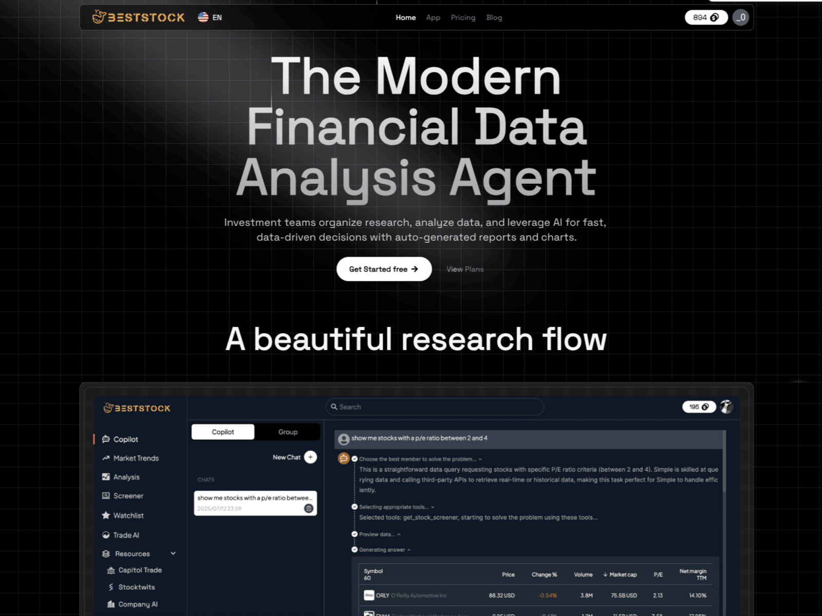 BestStock AI is an AI-powered stock analysis platform offering institutional-grade data, advanced analytics, and conversational AI to simplify and improve investment decisions.