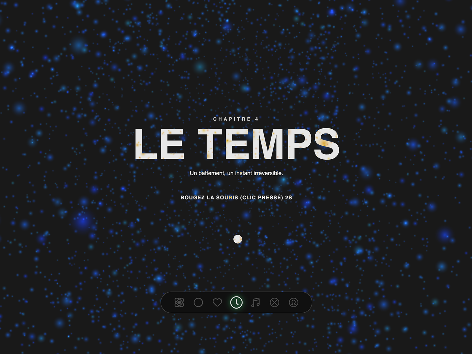 Explore the history of humanity in the palm of your hand. A camera or mouse experience where your movements sculpt history, from the void to humanity.