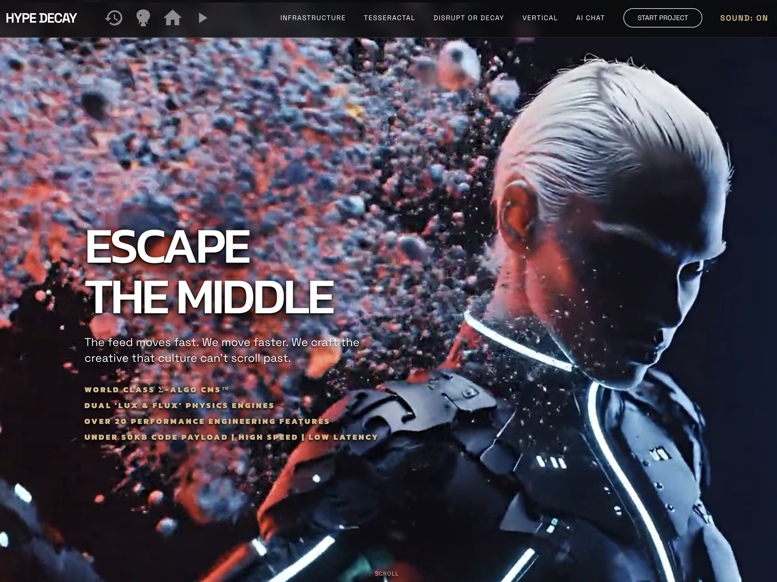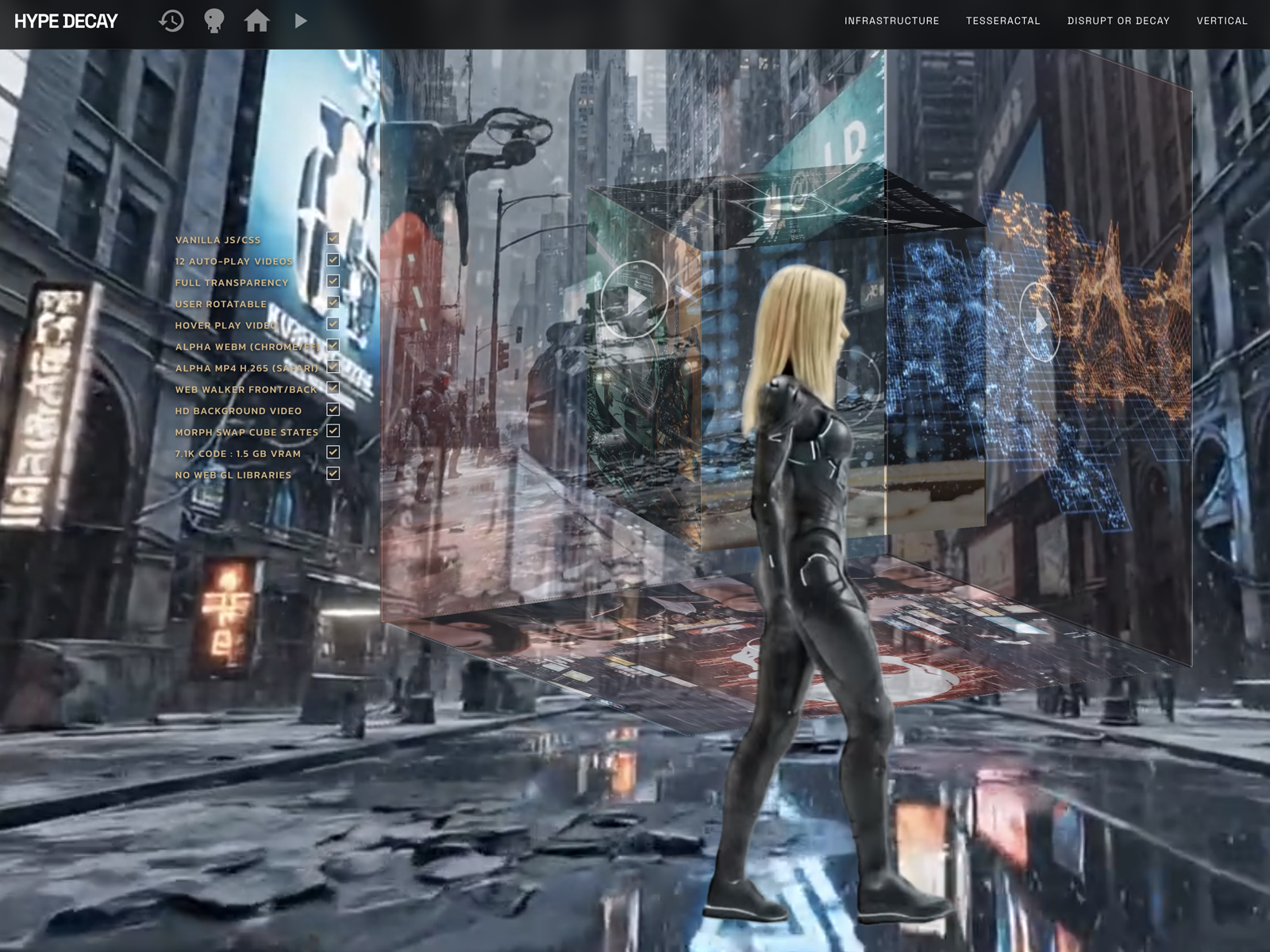 Zero-WebGL. Pure CSS3. We engineered a Tetraxial Matrix using a canvas multiplexer to project a single HD video stream across 24 3D nodes, maintaining a 97% GTmetrix score.