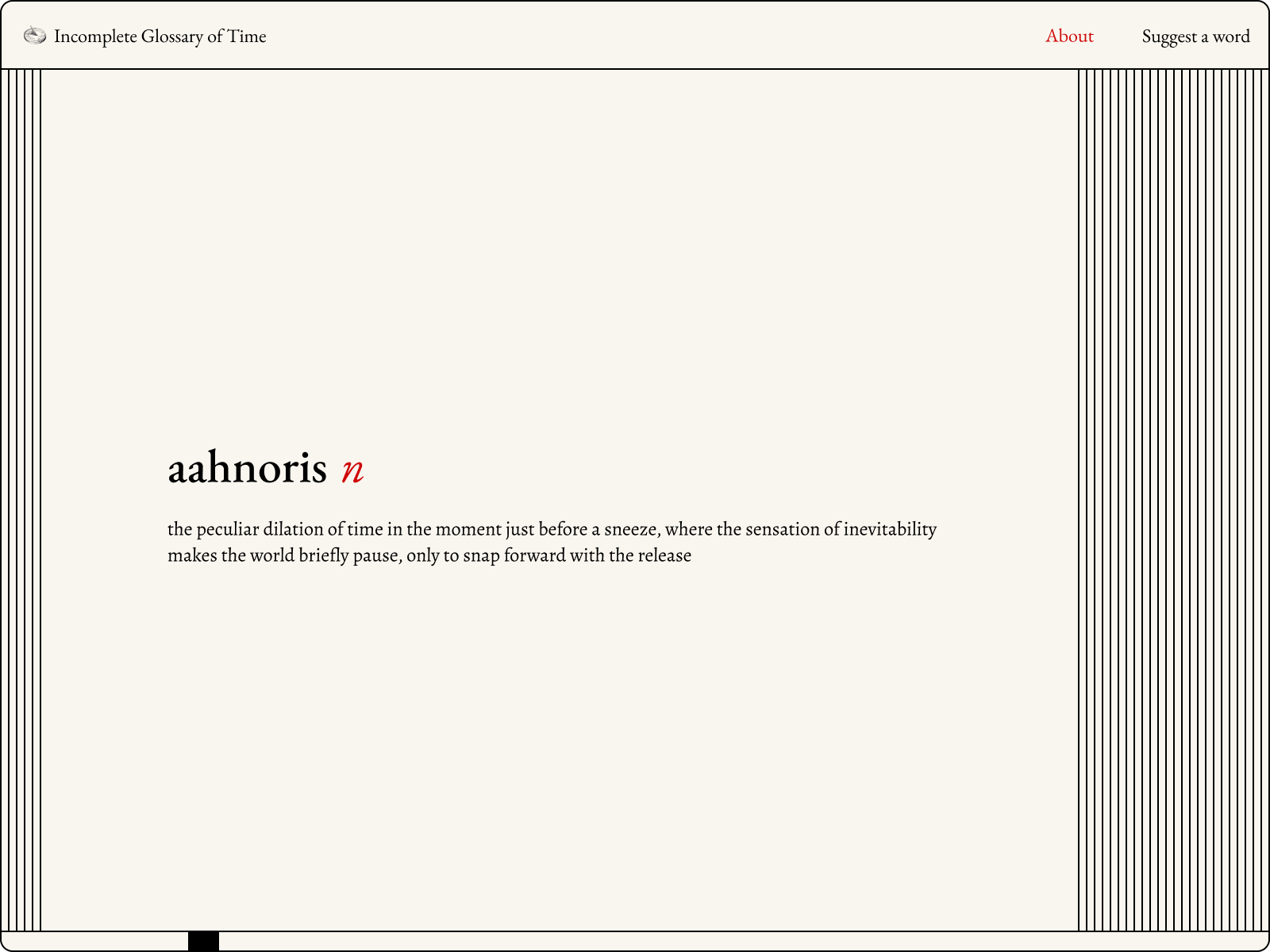 Have your say, if you liked  Incomplete Glossary of Time  make your vote here!