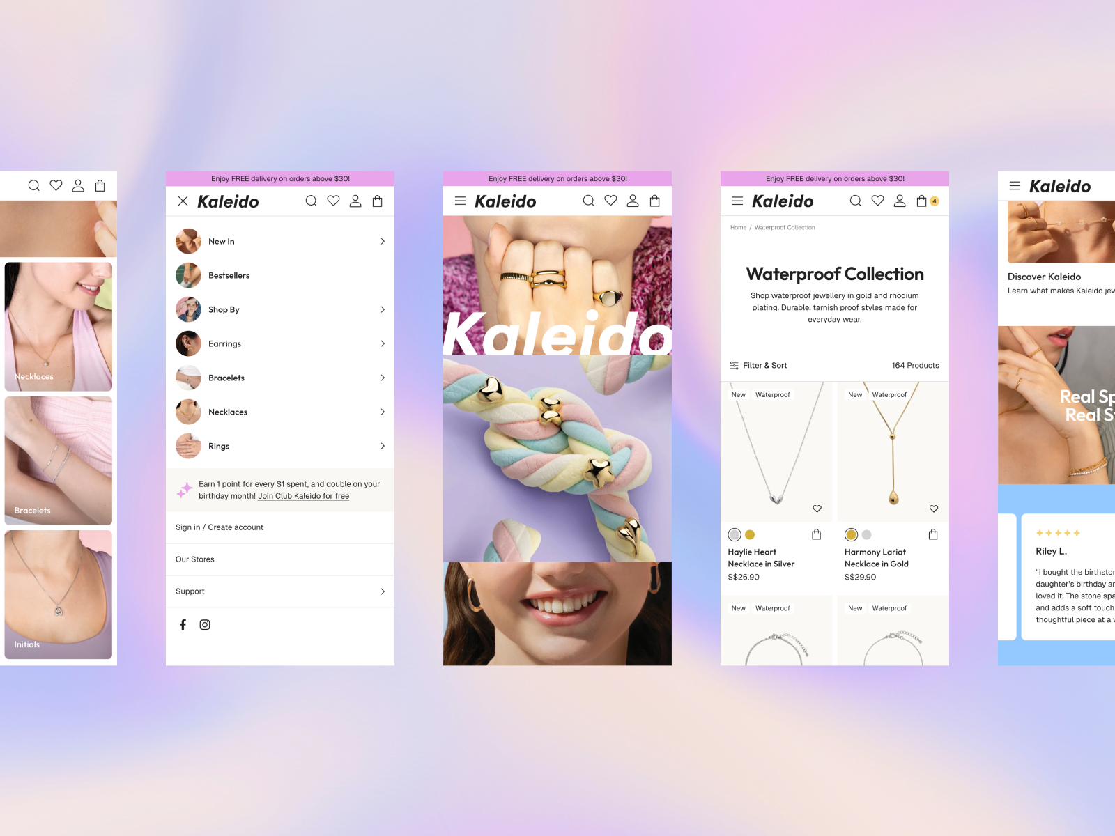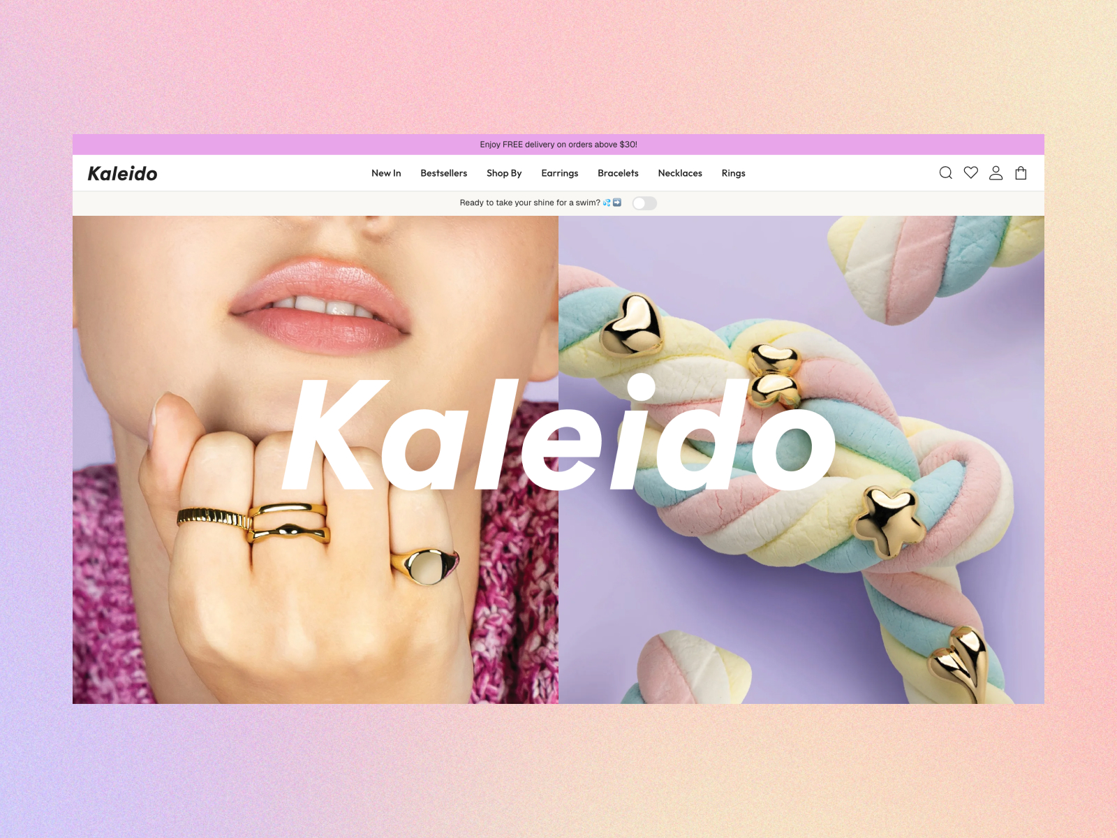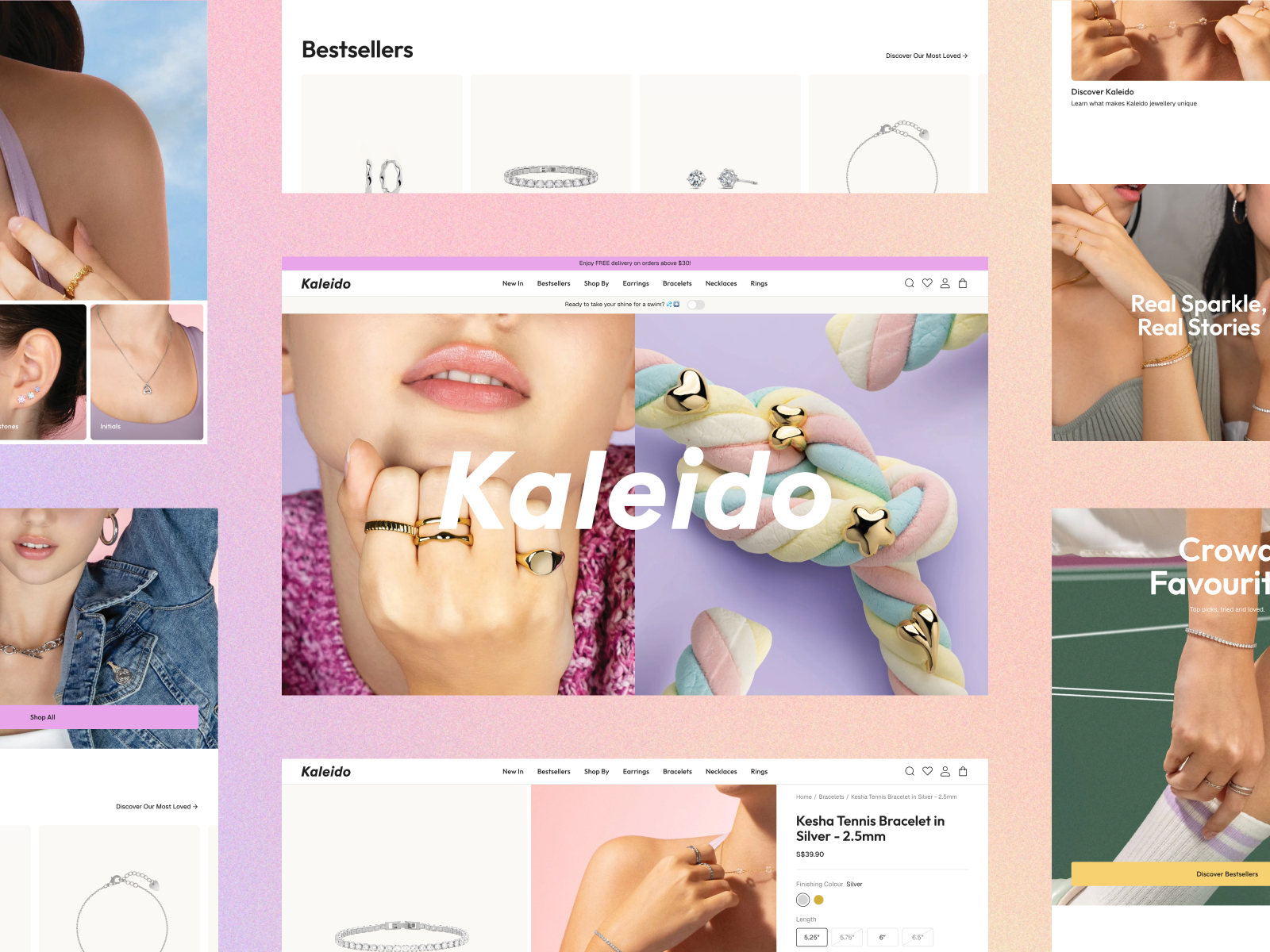 Kaleido Jewellery’s vibrant, user‑centric ecommerce site blends playful visuals with intuitive navigation and smart upselling for a seamless shopping experience.