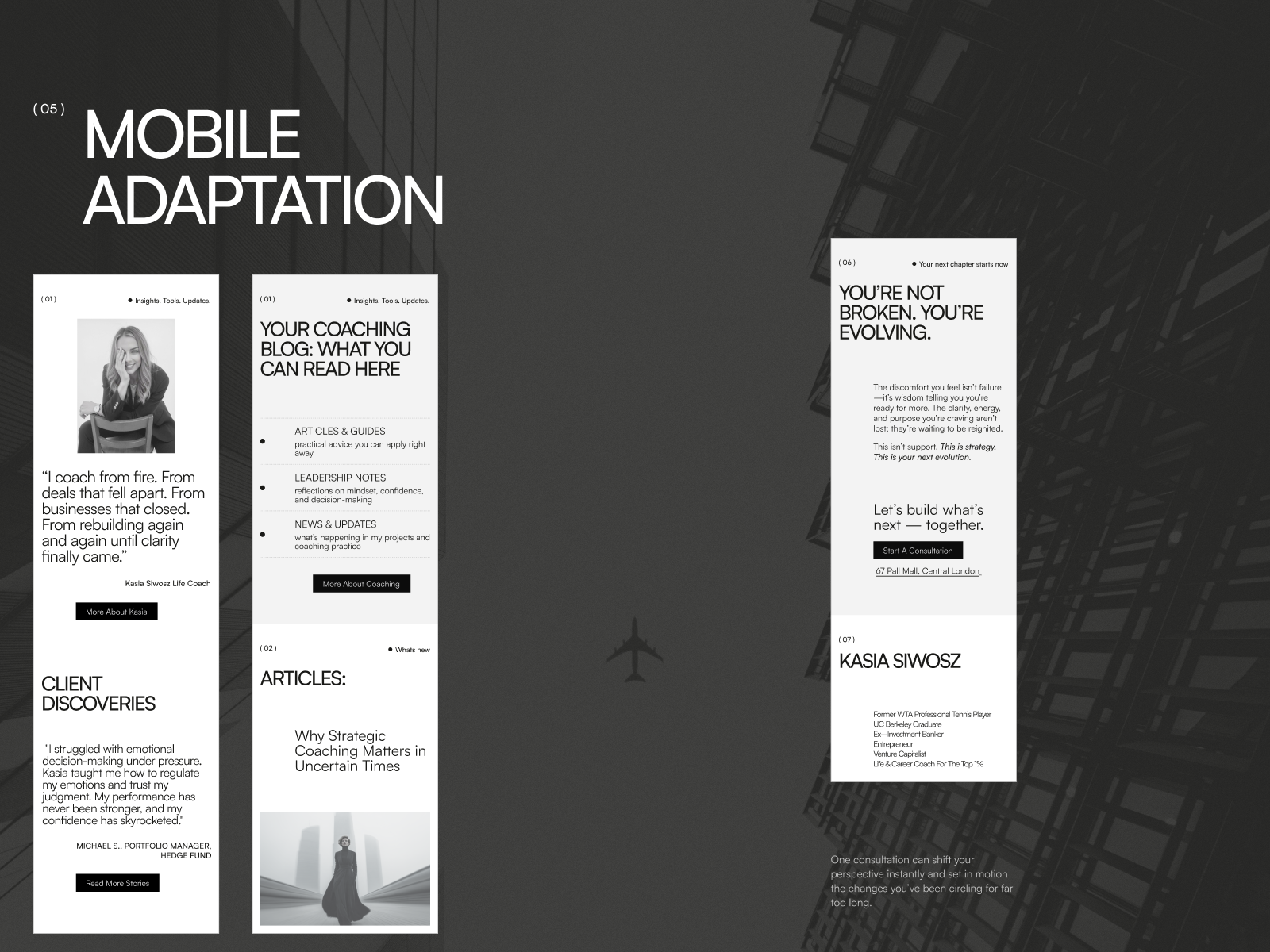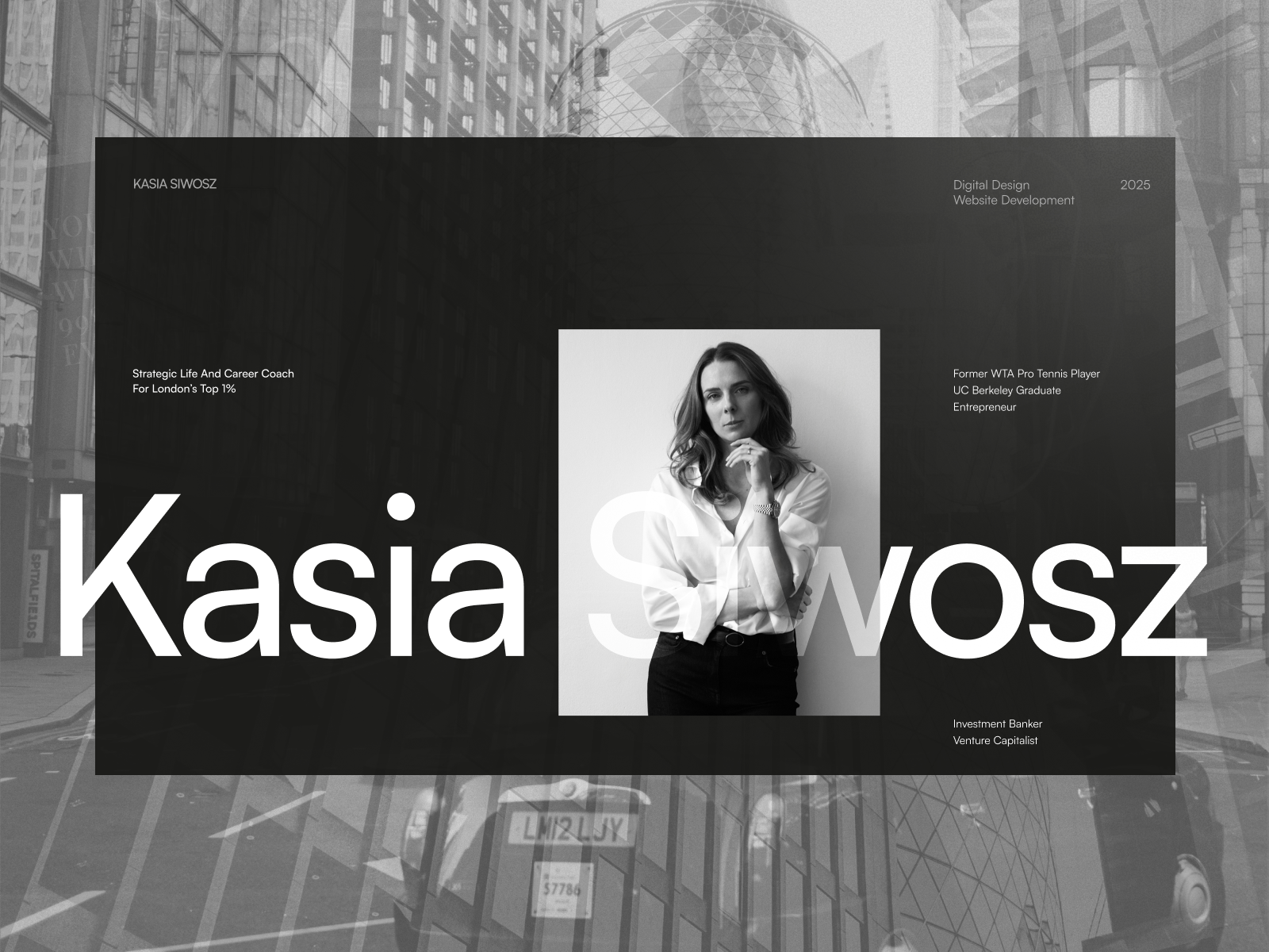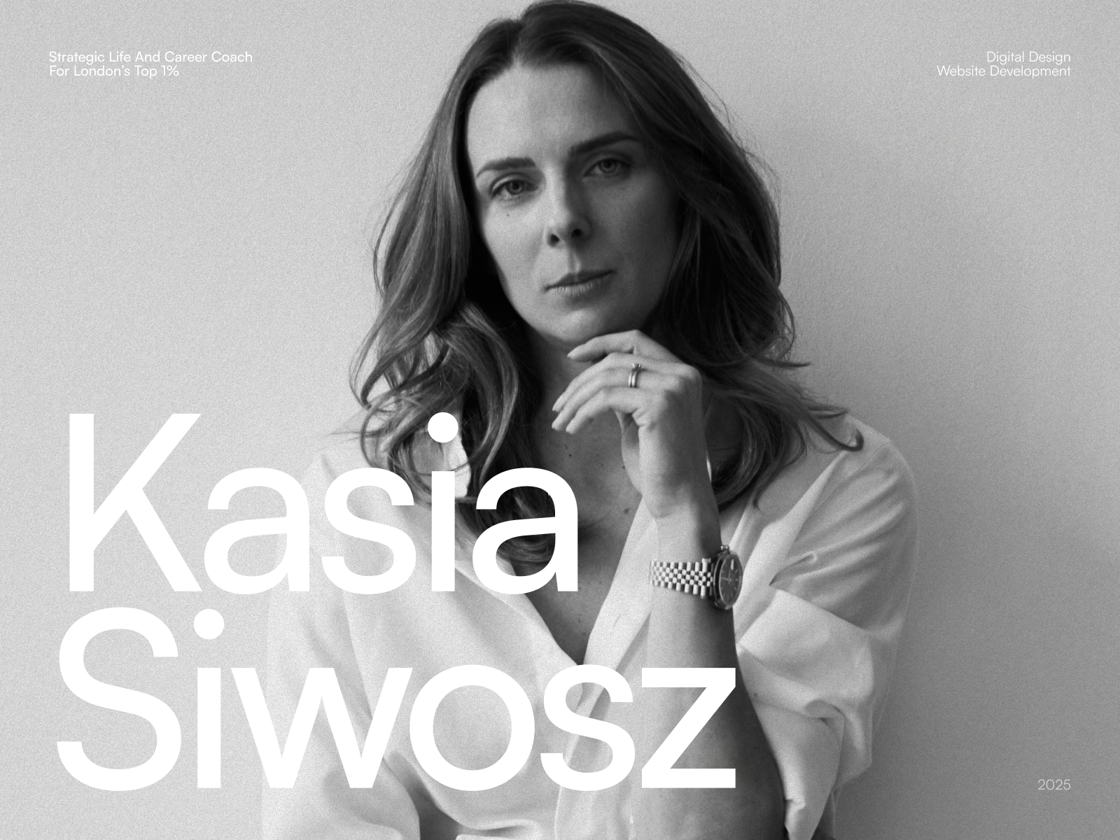 Personal brand website for Kasia Siwosz — a monochrome, emotional design blending strategy, elegance, and structure. Created by two Ukrainian designers — one in Canada, one in Ukraine.