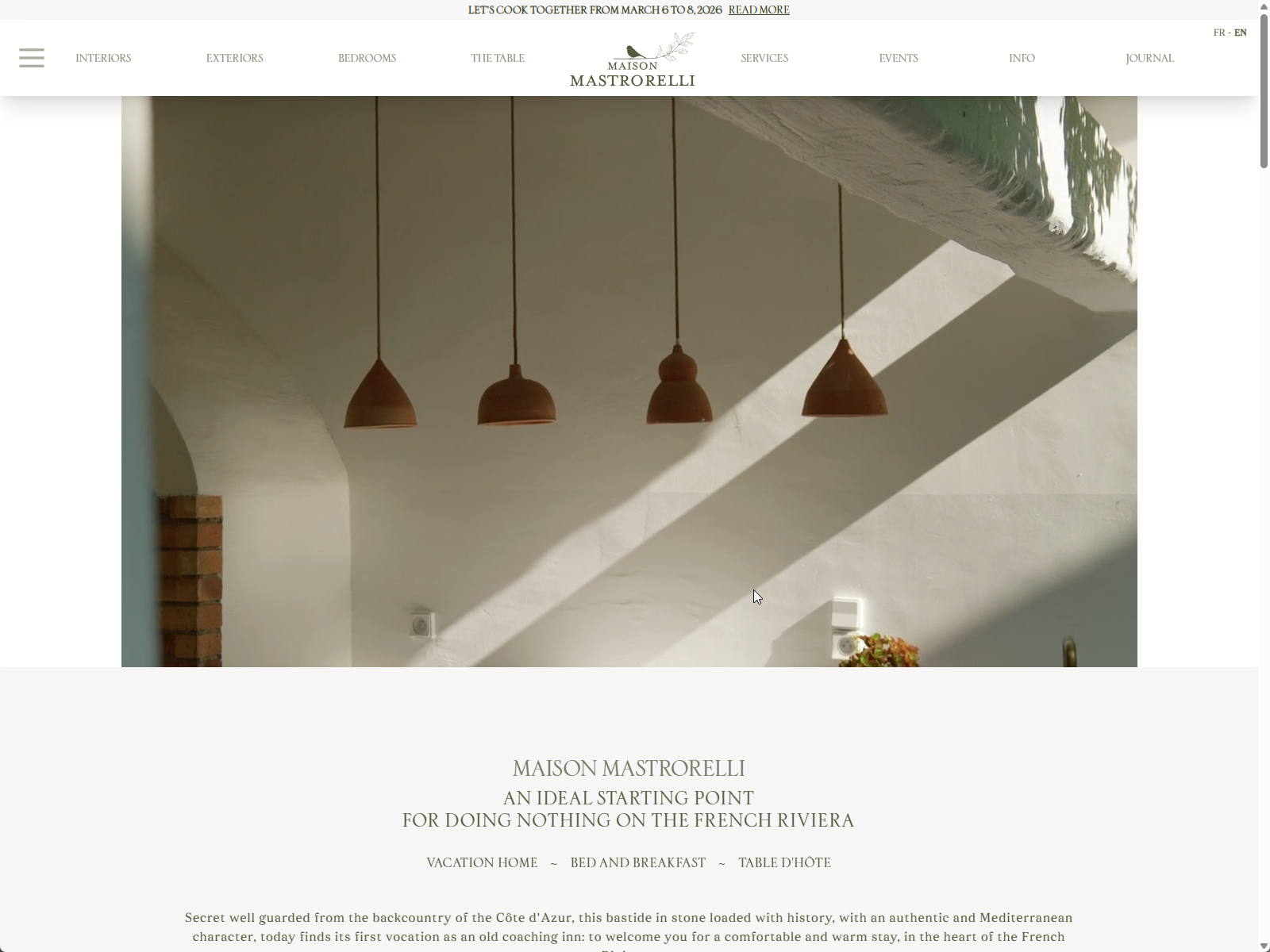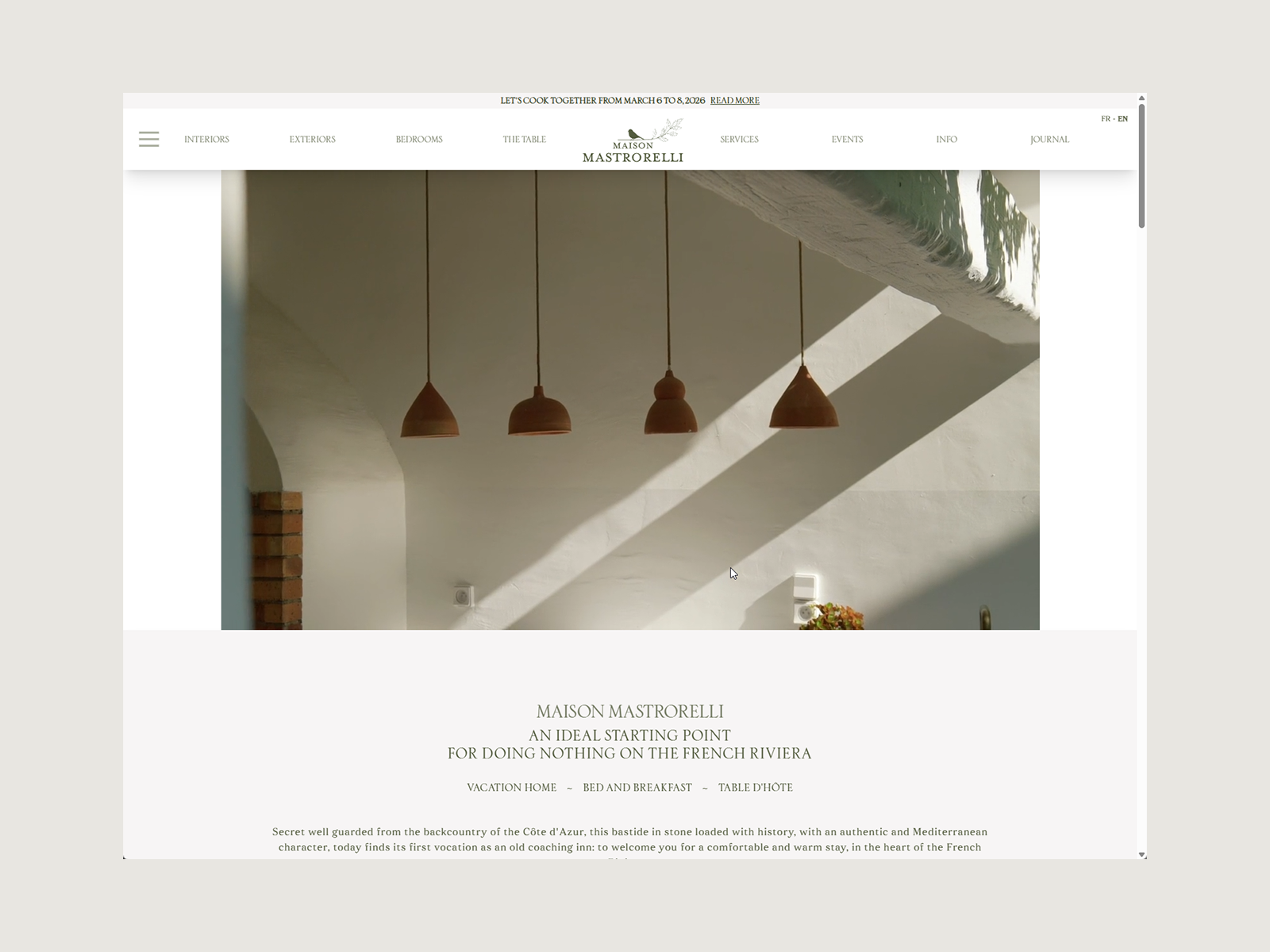 An 18th-century French Riviera guesthouse brought to life through Nuxt 3, elegant Sfizia typography, and immersive media. Where Mediterranean heritage meets modern web craftsmanship.