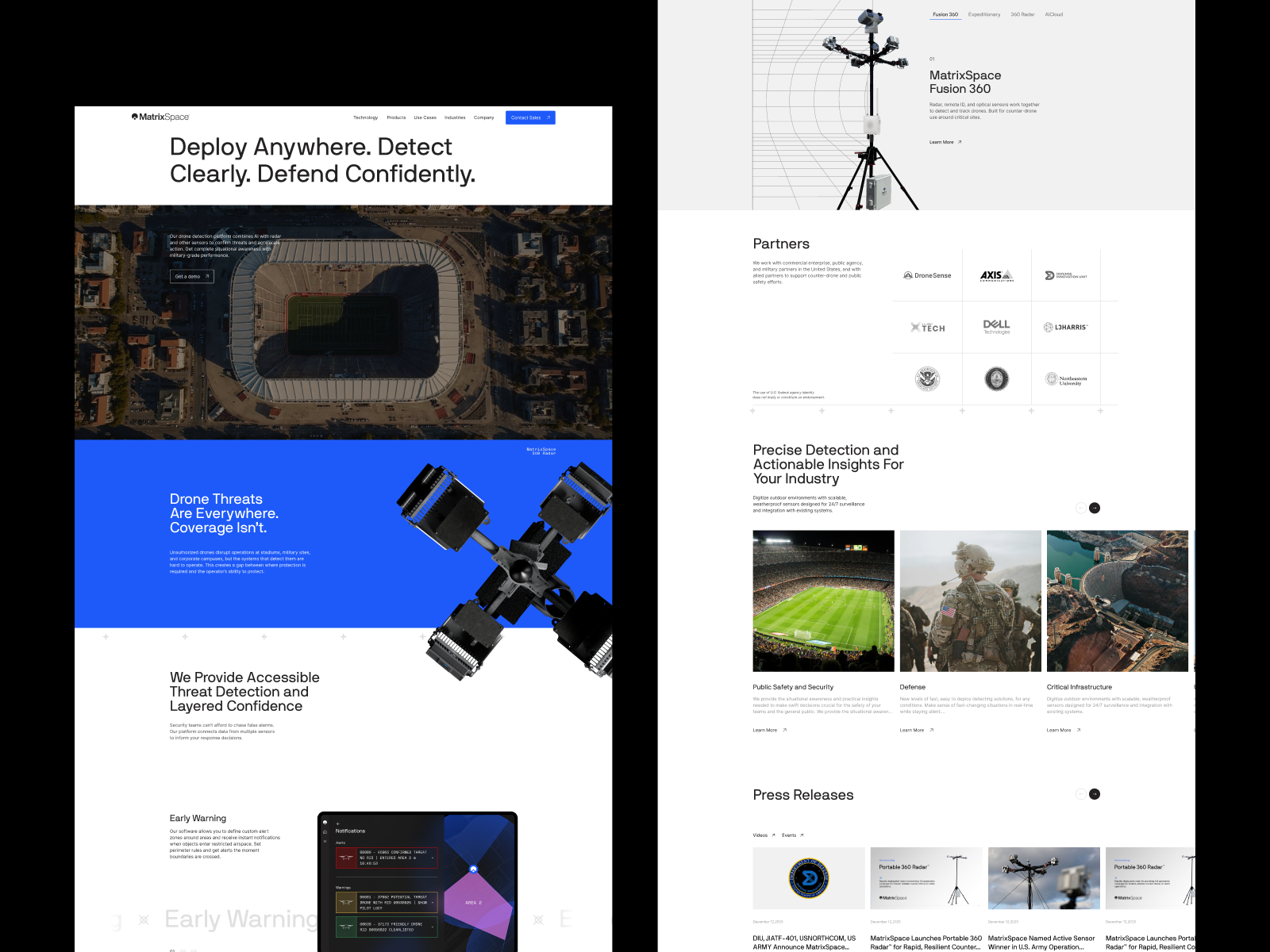 Brand & web design updates that make MatrixSpace’s radar technology easy to understand, positioning it as an AI sensing leader for defense and commercial use.