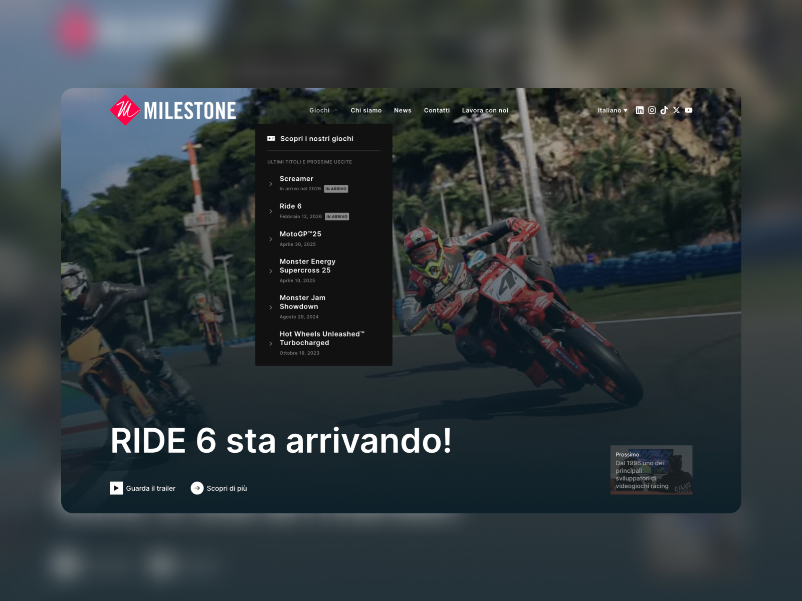 New digital hub for Milestone Games, unifying animation-rich game sites and corporate pages with a custom navigation which allows for multiple brands to coexist seamlessly in a website.