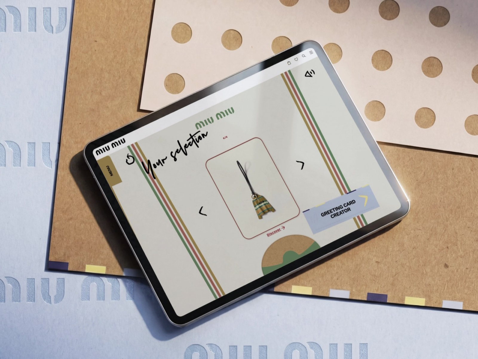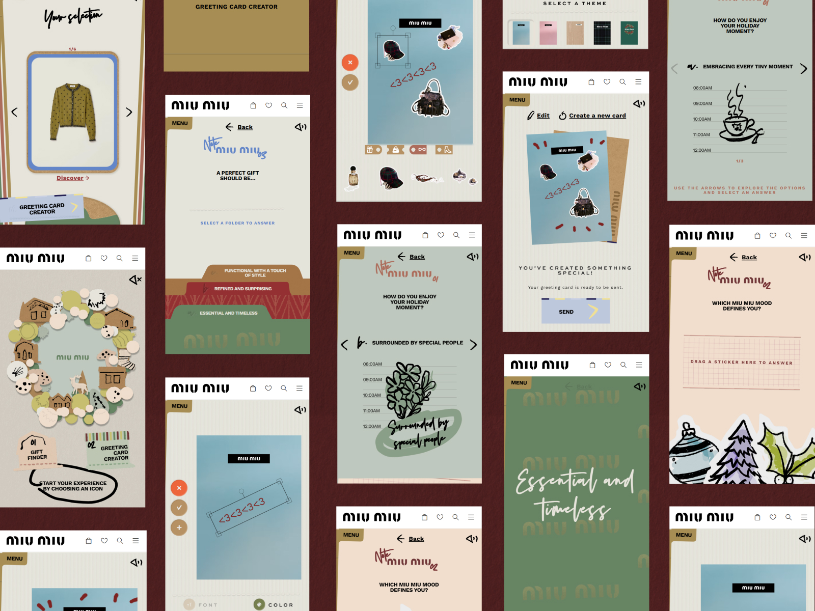 A playful holiday experience for Miu Miu that reimagines gifting as a personal diary, blending emotional storytelling, personalized commerce, and digital card creation into one journey.