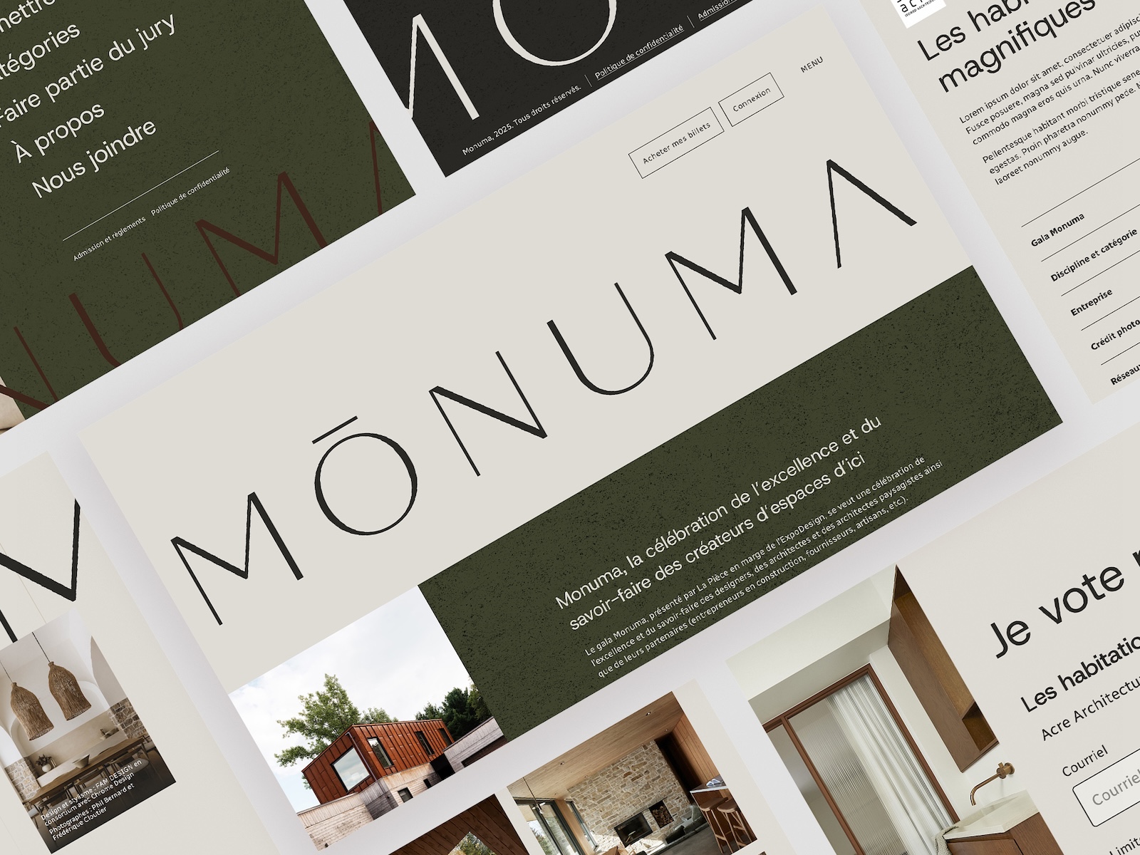 Plateforme sur mesure pour le Gala Monuma : un thème WordPress personnalisé qui valorise les projets d’aménagement du Québec et simplifie tout le processus de candidature en ligne.