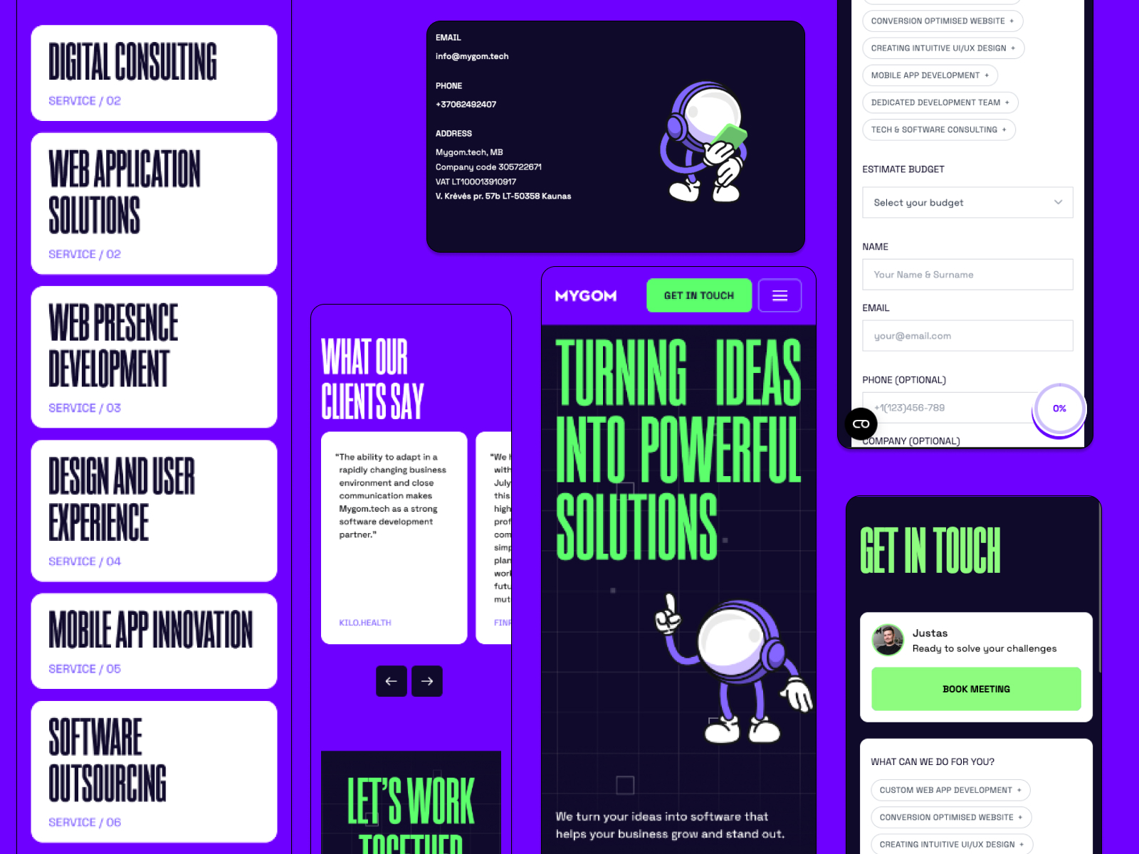 Software development agency showcasing complex AI, fintech, and SaaS projects. Clean design that lets the technical work speak for itself.